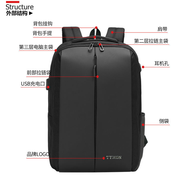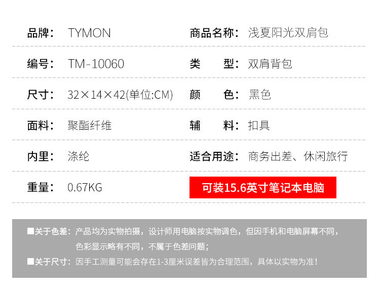 商品名称:TYMON/泰梦浅夏阳光双肩包TM-10060 黑色