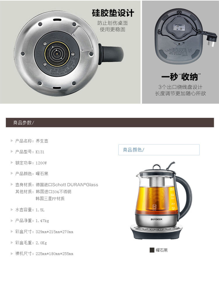 商品名称:BUYDEEM/北鼎1.5升英朗版养生壶K131