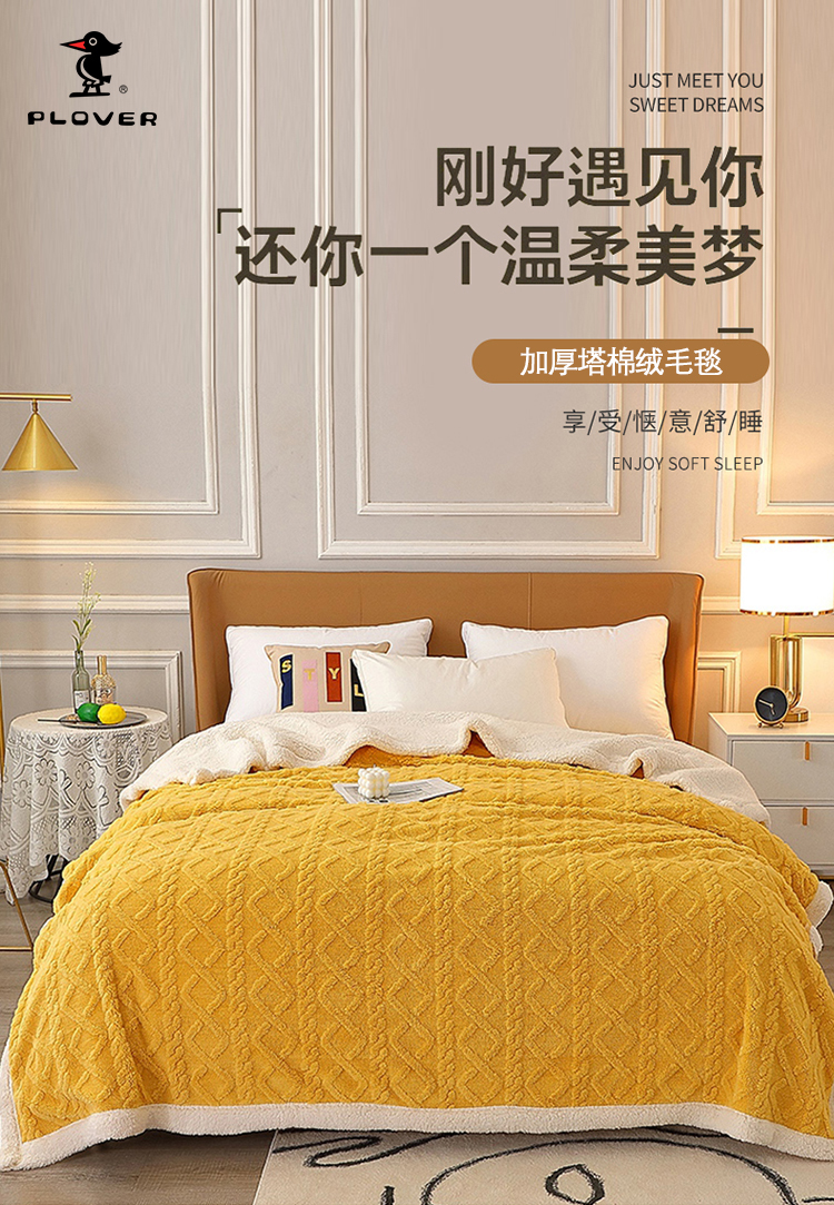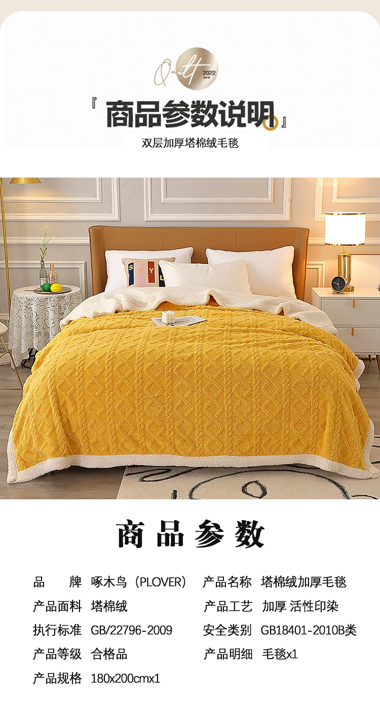 商品名称:PLOVER/啄木鸟塔棉绒加厚毛毯-桔黄色180*200cm 约1700g