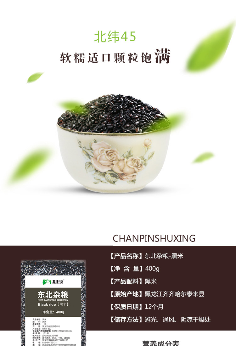 商品名称:北纬45°东北杂粮黑米400g*3包