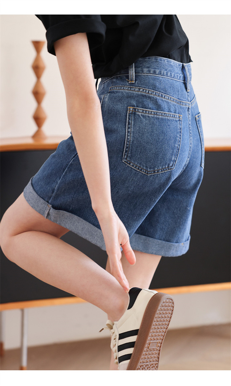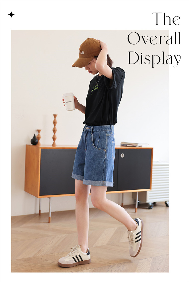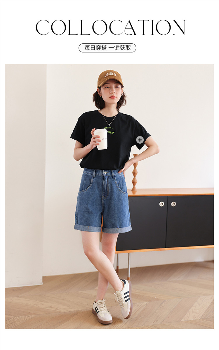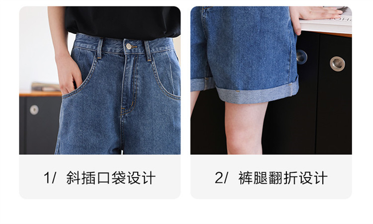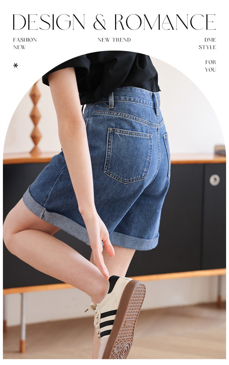 商品名称:【翻边短裤】夏款网红风一粒扣裤腿翻边牛仔短裤女 640386