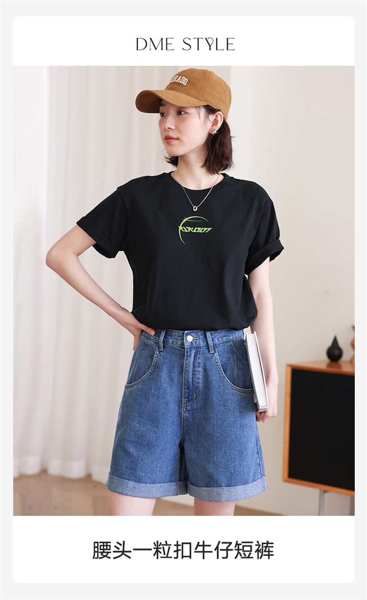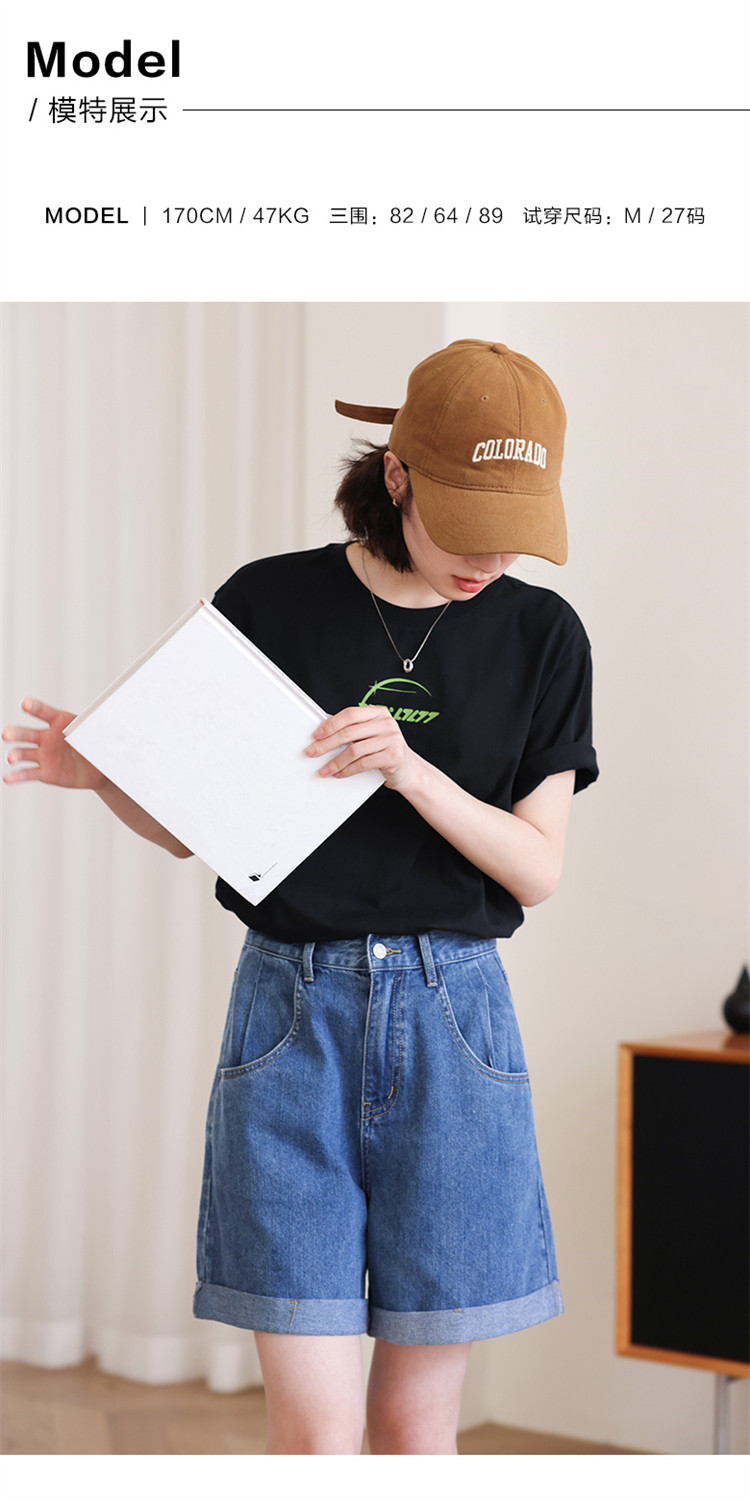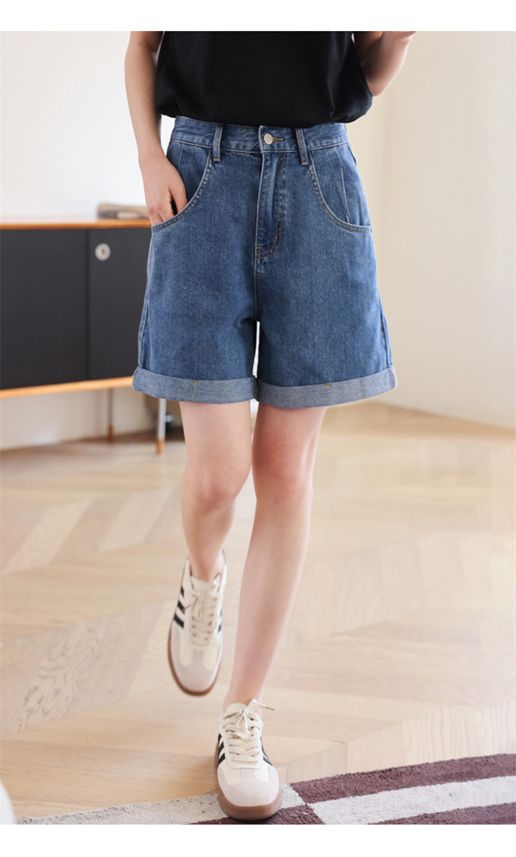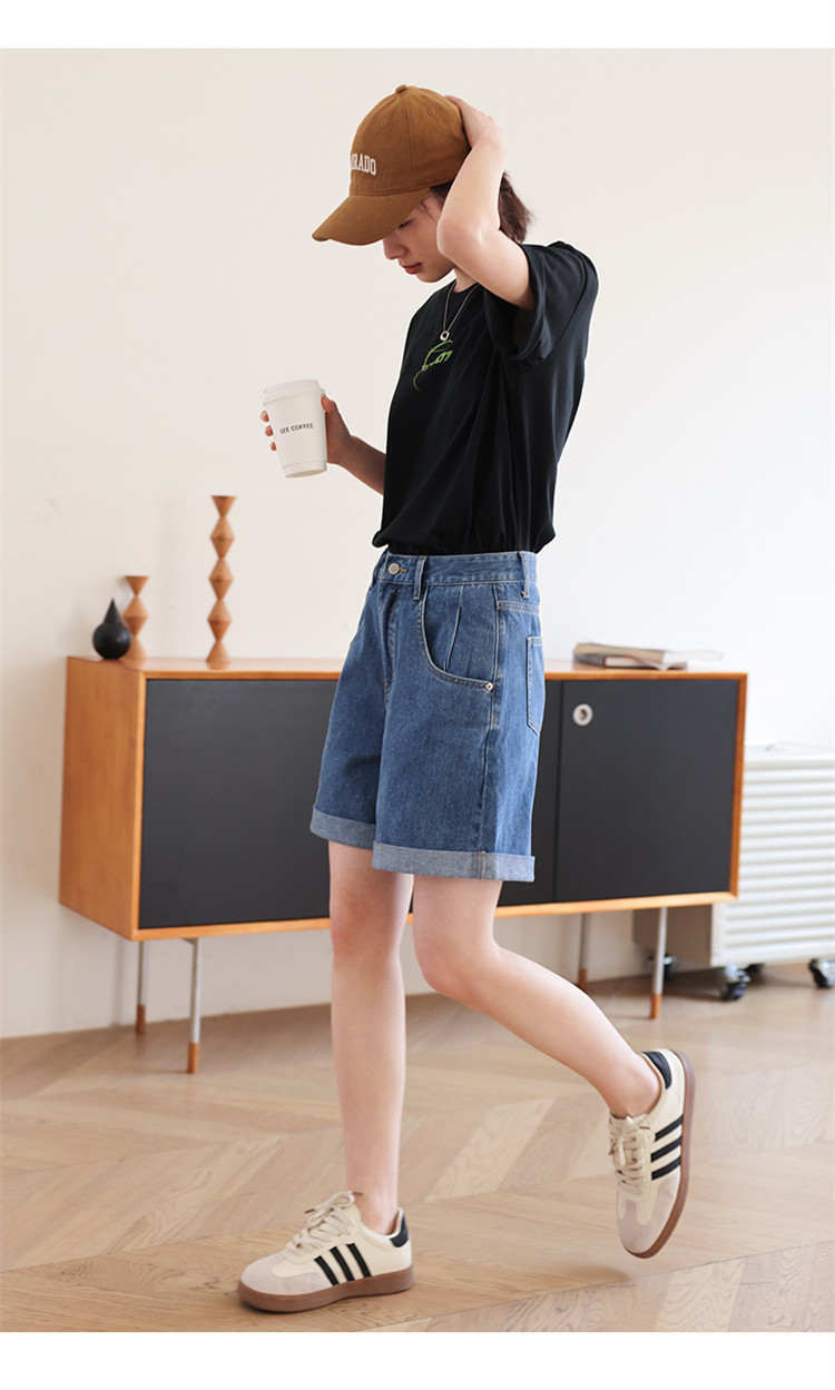 商品名称:【翻边短裤】夏款网红风一粒扣裤腿翻边牛仔短裤女 640386