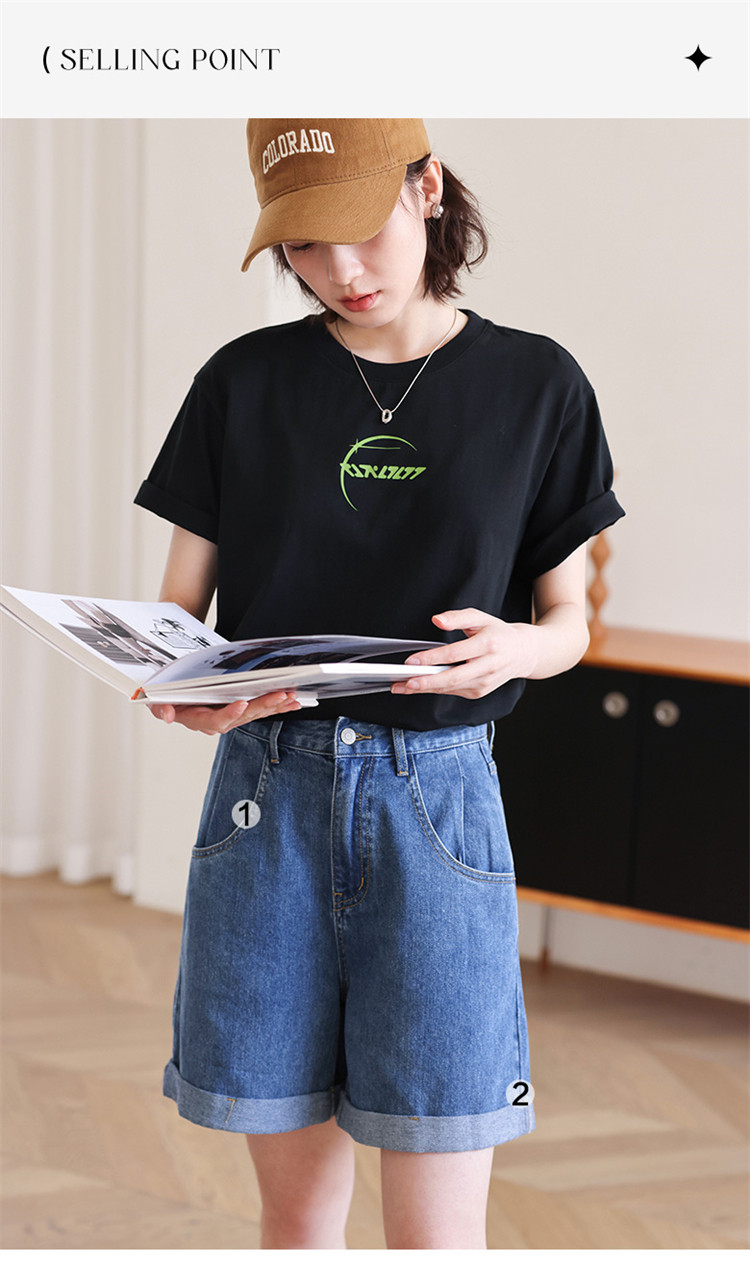 【翻边短裤】夏款网红风一粒扣裤腿翻边牛仔短裤女 640386