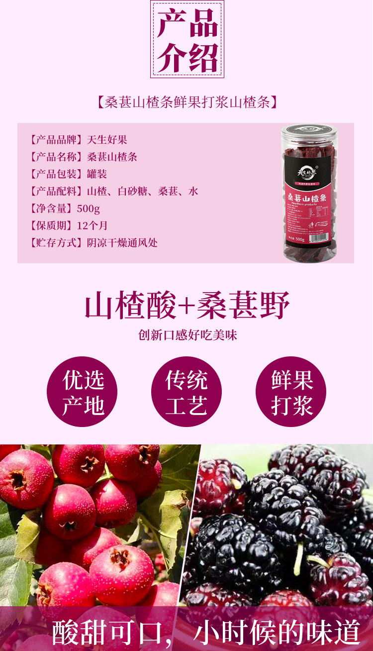 商品名称:天生好果桑葚山楂条500g*2罐