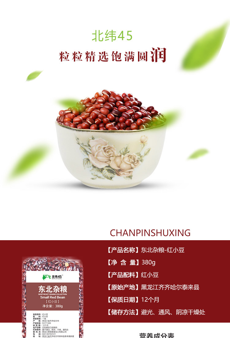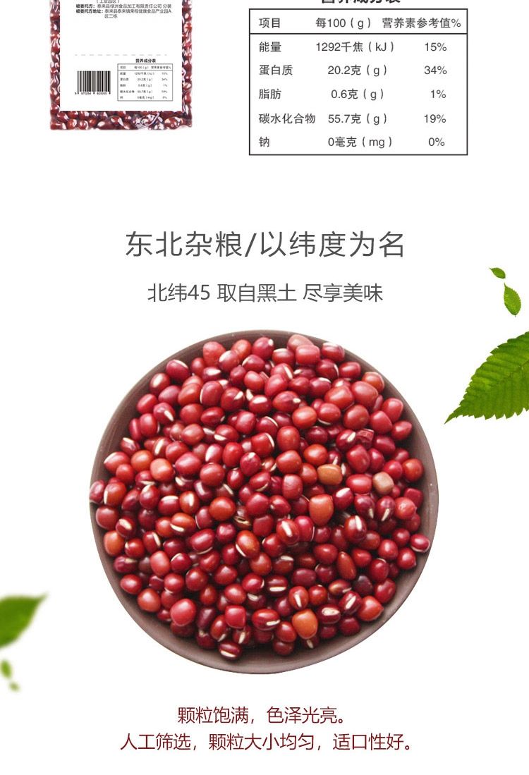 商品名称:北纬45°东北杂粮红小豆380g*3包
