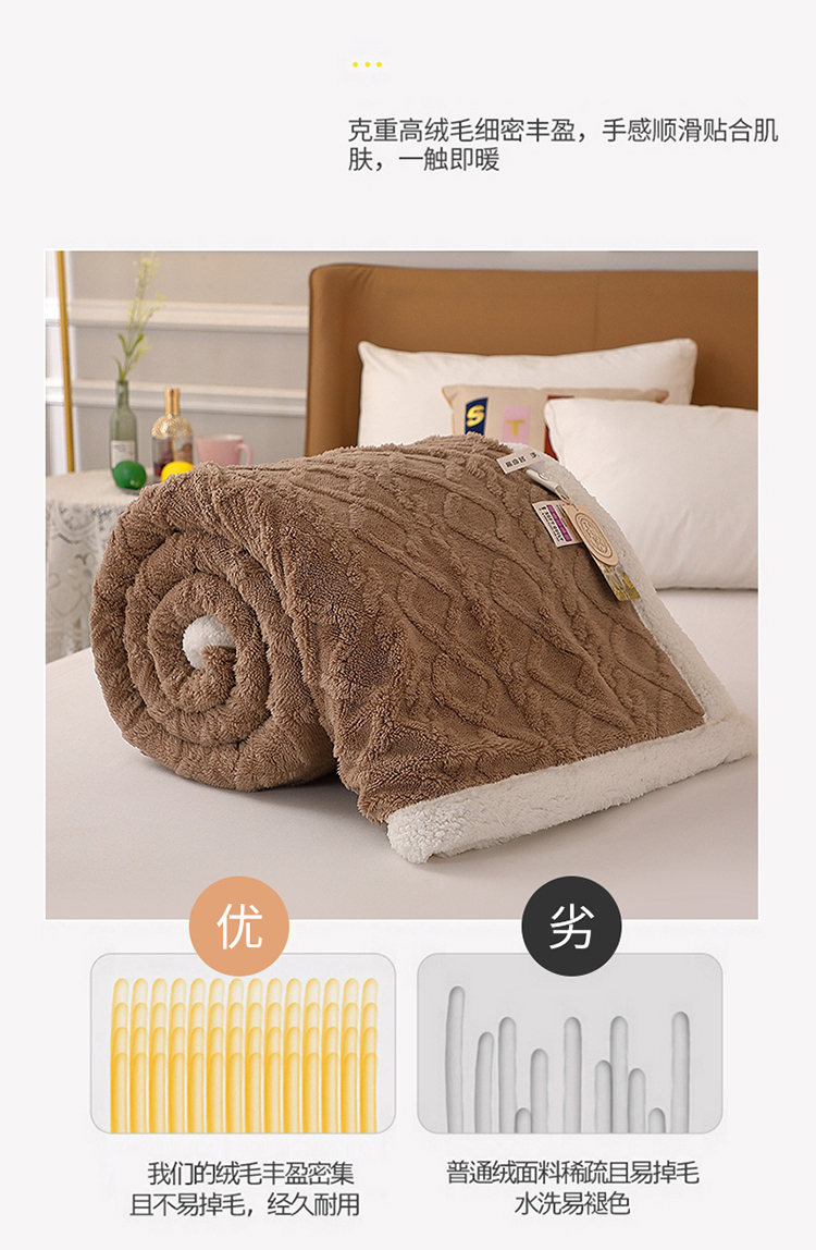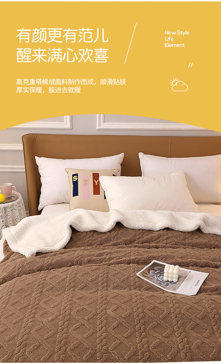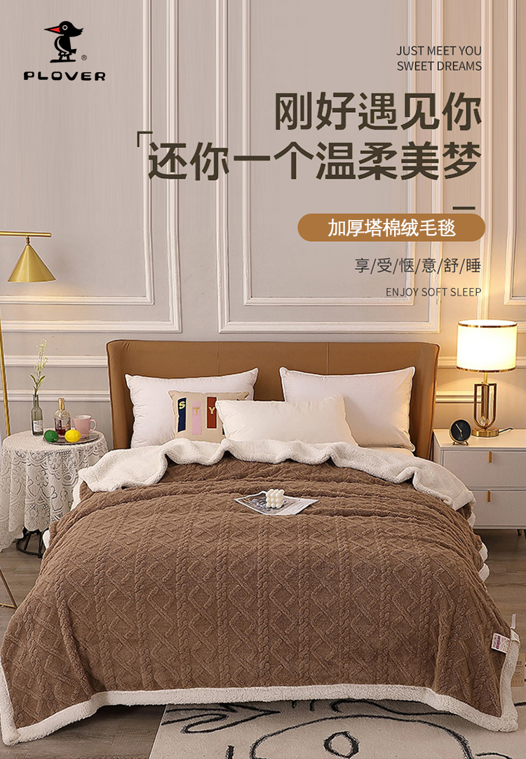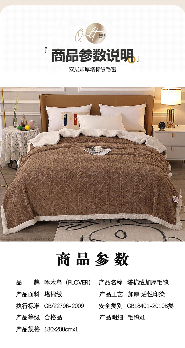 商品名称:PLOVER/啄木鸟塔棉绒加厚毛毯-茶褐色180*200cm 约1700g