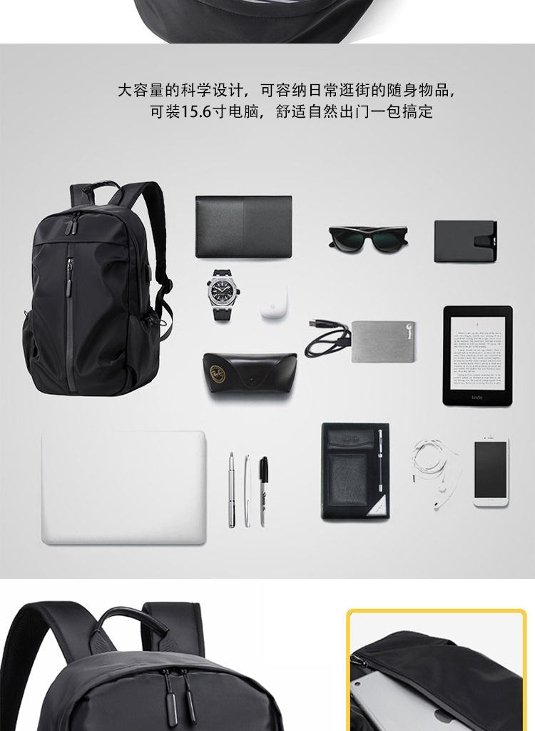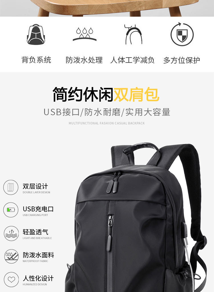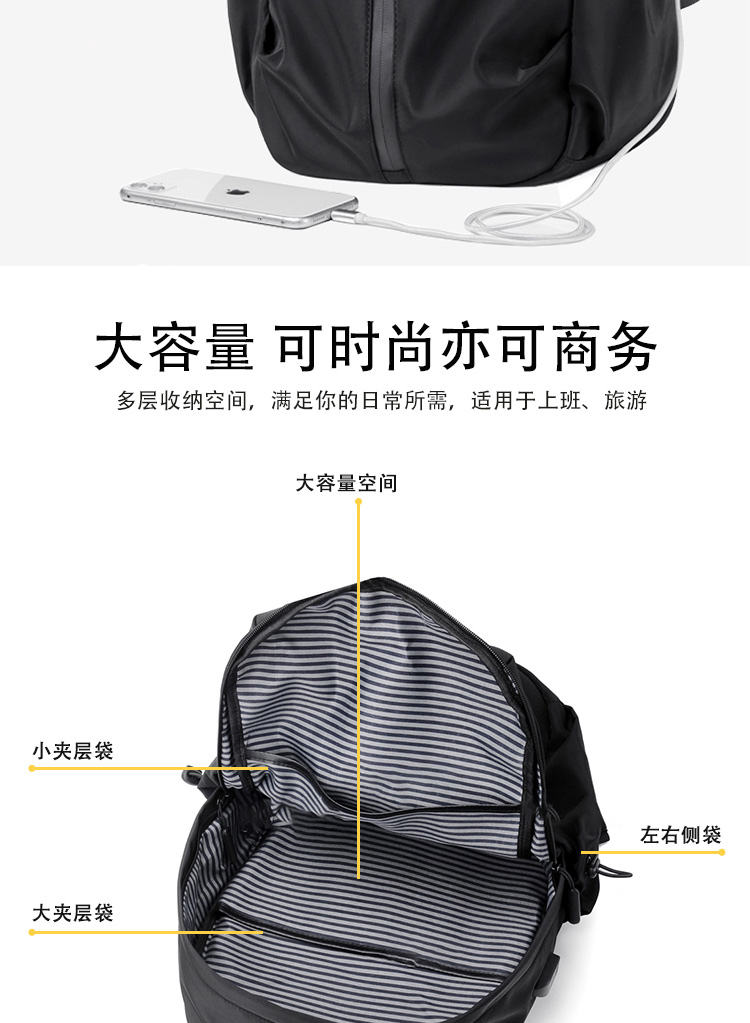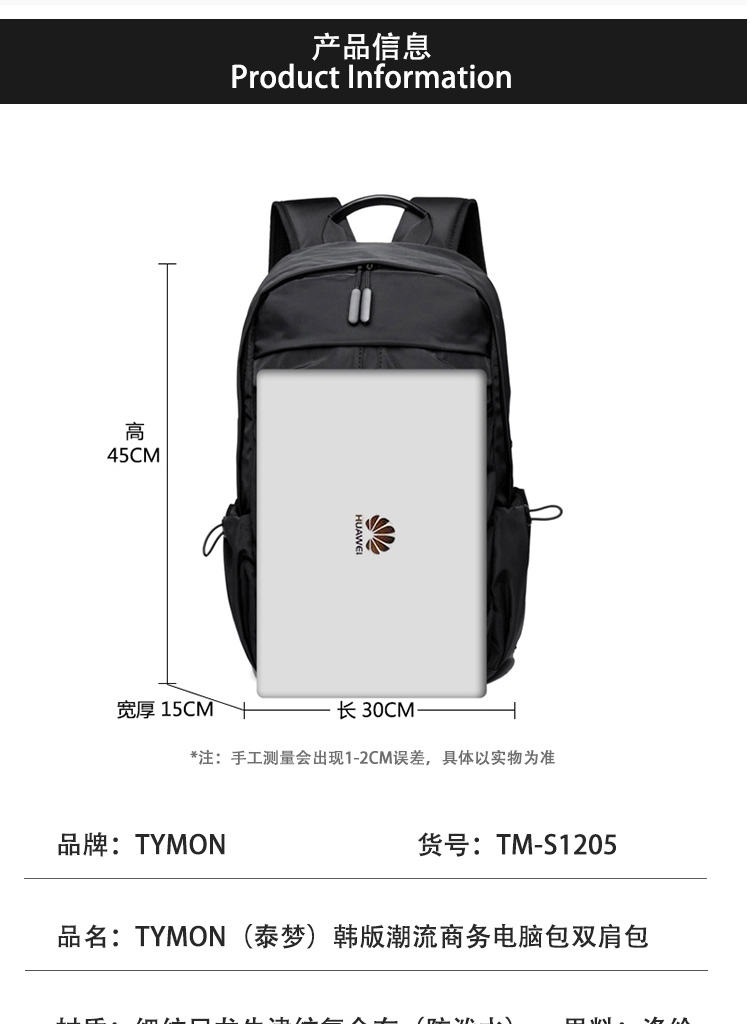 商品名称:TYMON/泰梦韩版潮流商务双肩包-黑色TM-S1205