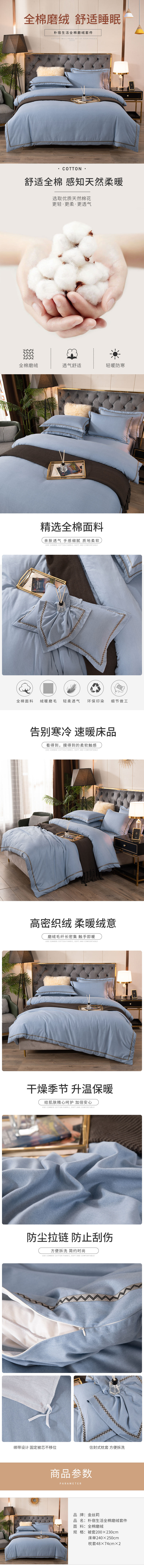 商品名称:KINTHERI/金丝莉朴宿生活全棉磨绒床品四件套-蓝色200*230cm