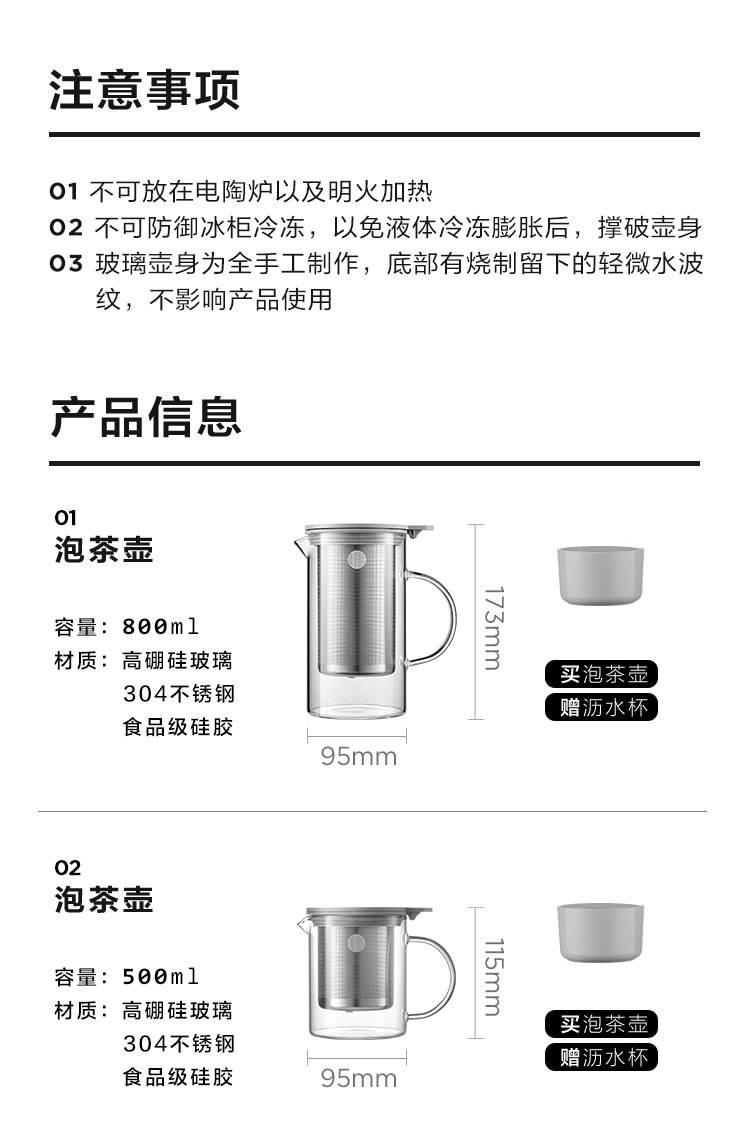 商品名称:BUYDEEM/北鼎JING系列玻璃泡茶壶