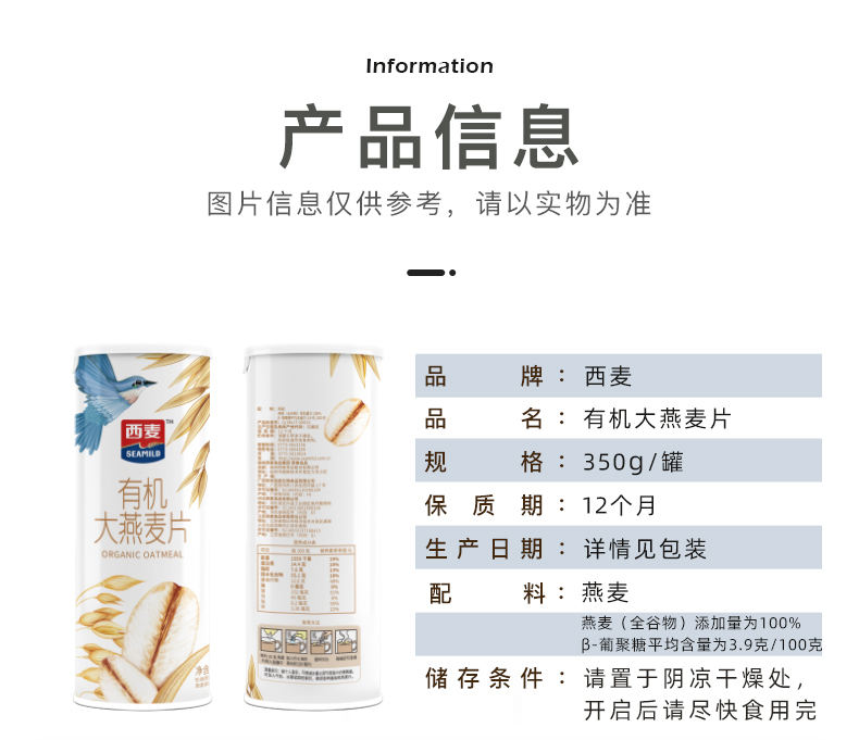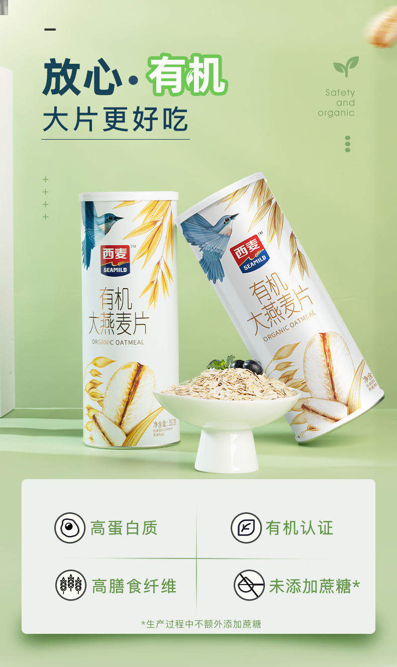 商品名称:SEAMILD/西麦无蔗糖即食有机大燕麦片350g*2罐