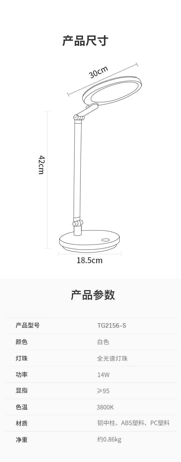 商品名称:【京东配送】好视力国AA级全光谱LED学习阅读台灯-白色TG2156S-WH