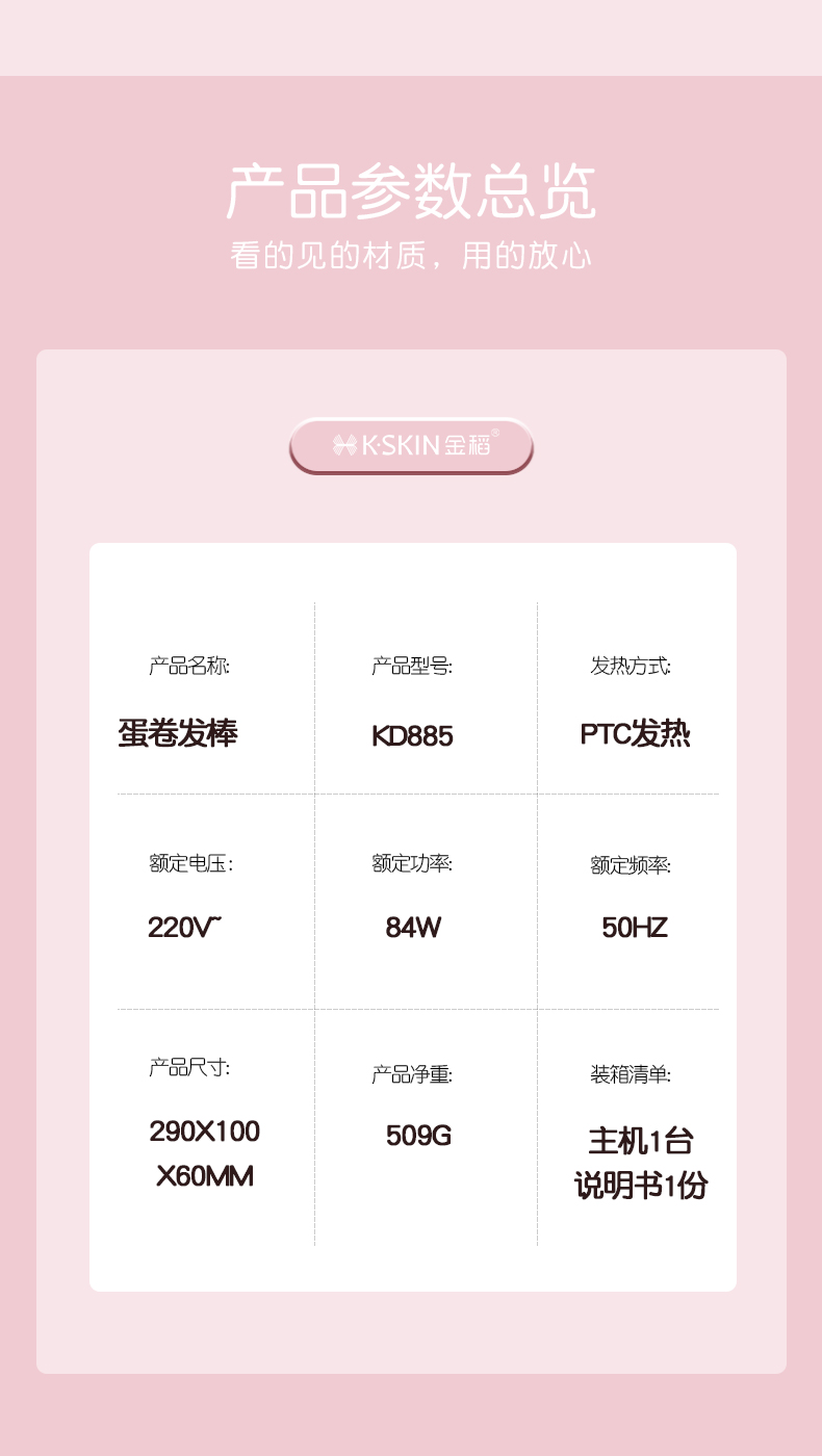 商品名称:K.SKIN/金稻负离子蛋卷发棒-粉色KD885