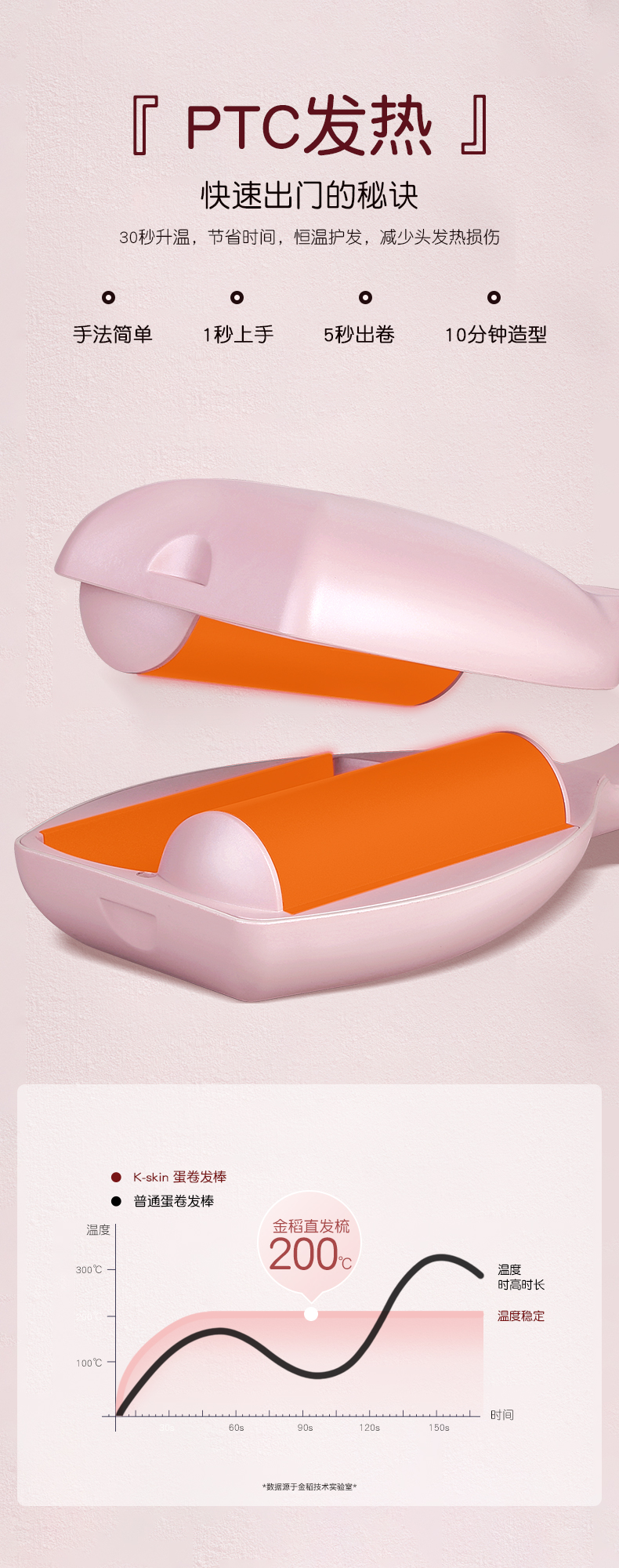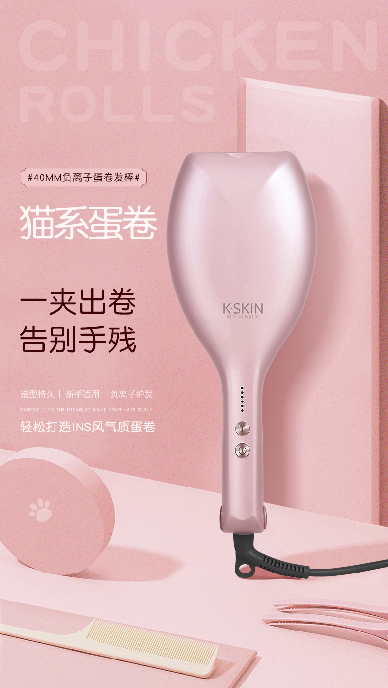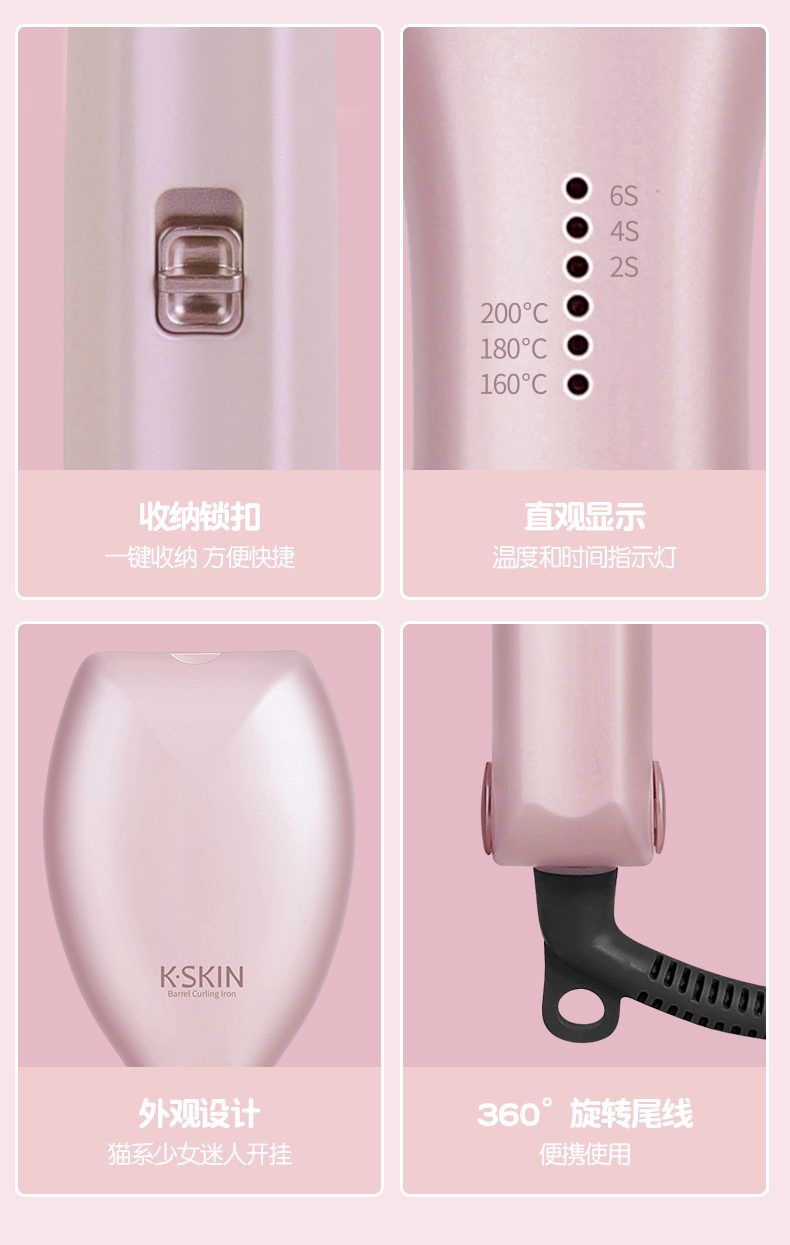 K.SKIN/金稻负离子蛋卷发棒-粉色KD885
