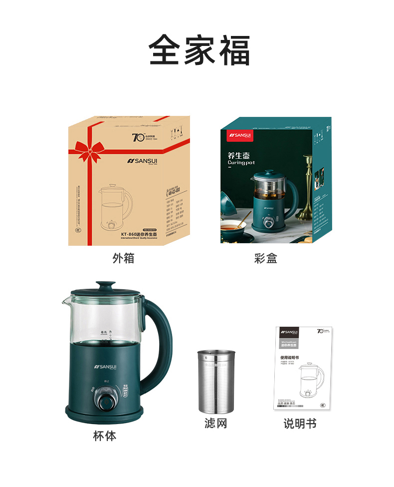 商品名称:SANSUI/山水600毫升mini多功能养生壶KT-860