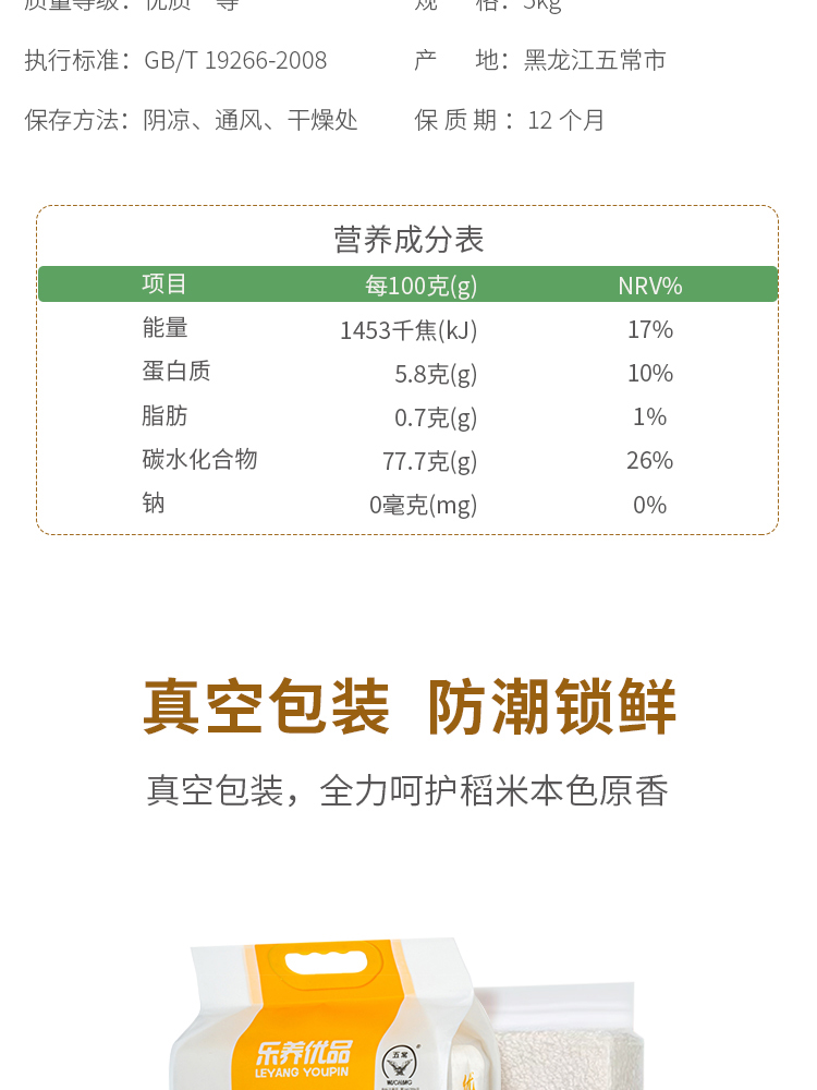 商品名称:乐养优品么么哒五常大米5kg