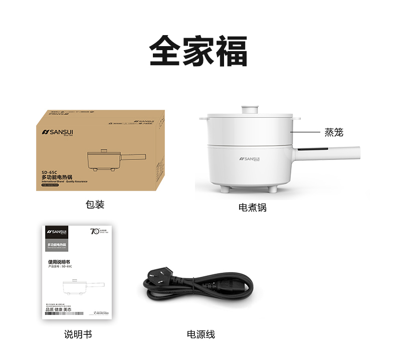 商品名称:(WS)SANSUI/山水2.5升双层多功能电煮锅SD-65C
