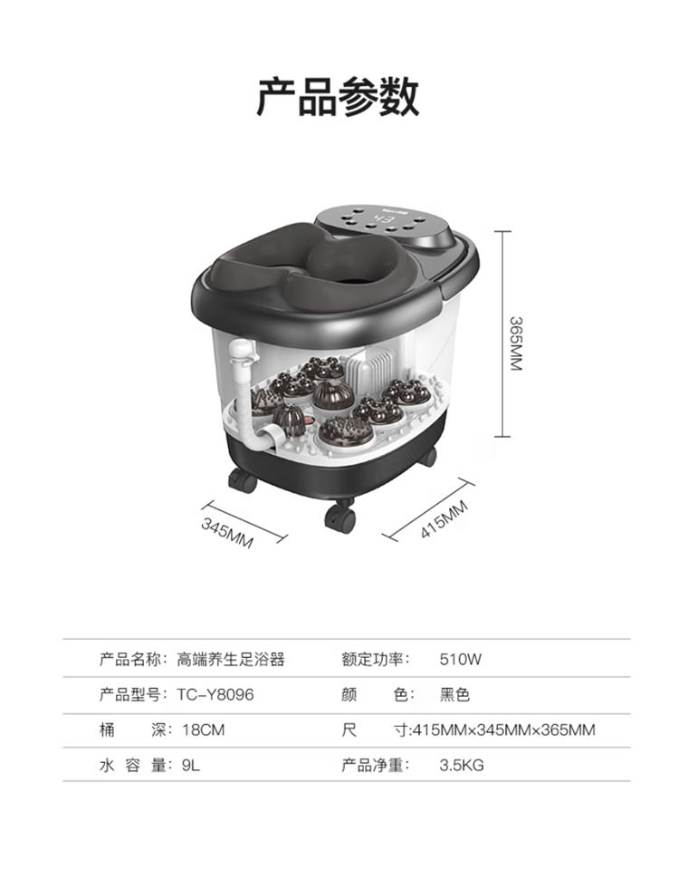 商品名称:Taicn/泰昌高端养生足浴盆-黑色TC-Y8096