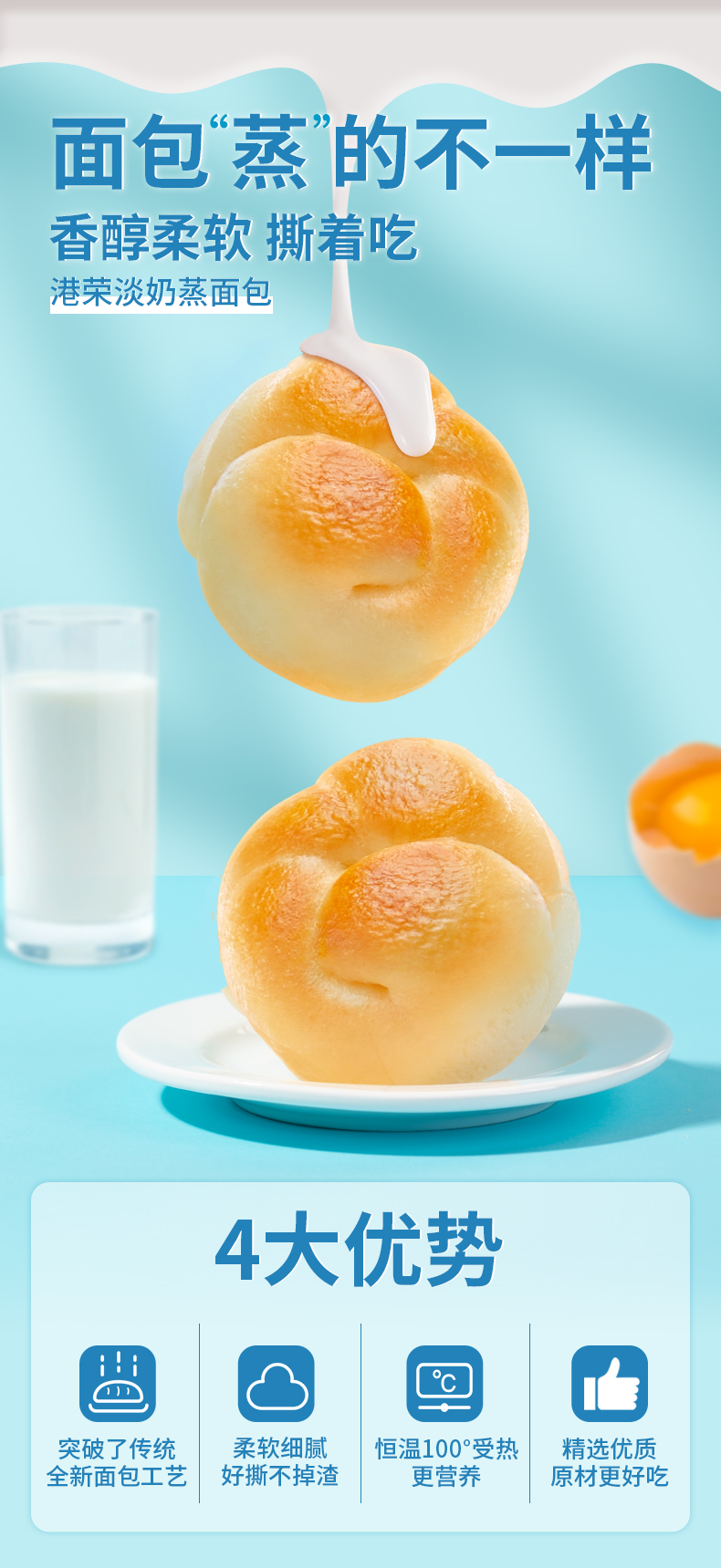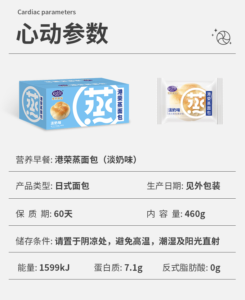 商品名称:KONG WENG/港荣淡奶味蒸面包整箱460g