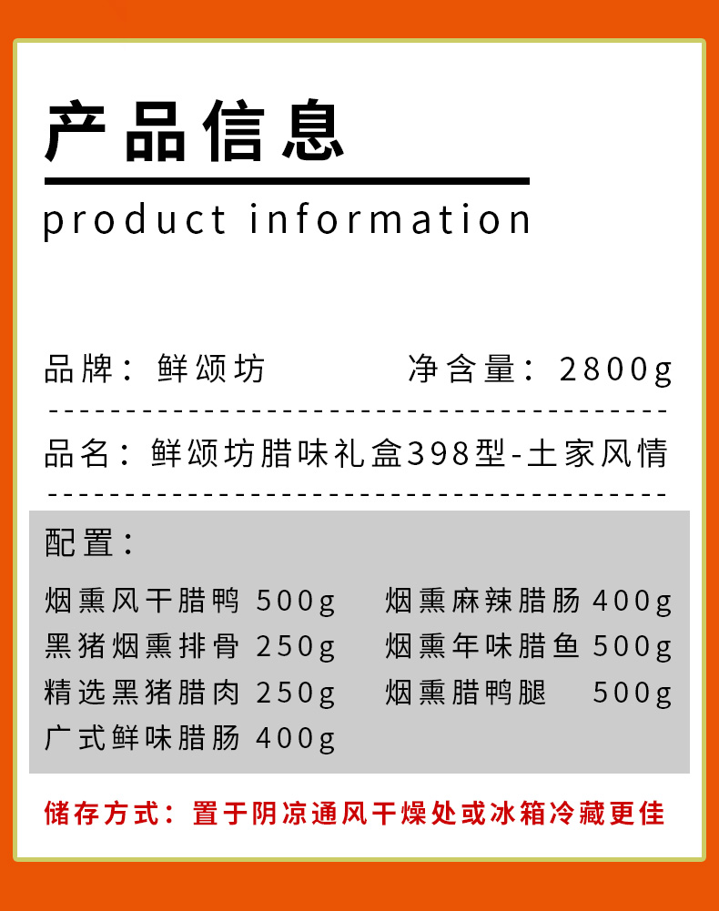 商品名称:鲜颂坊山野本味腊味礼盒398型2800g
