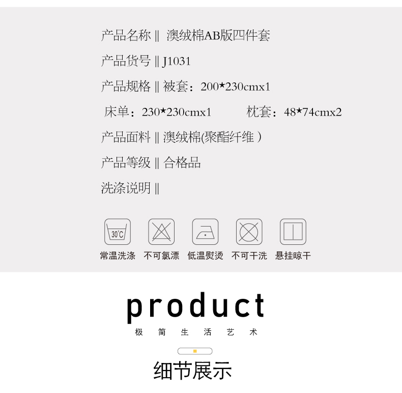 商品名称:M-RANDON/美缘登澳绒棉AB版床品四件套200*230cm