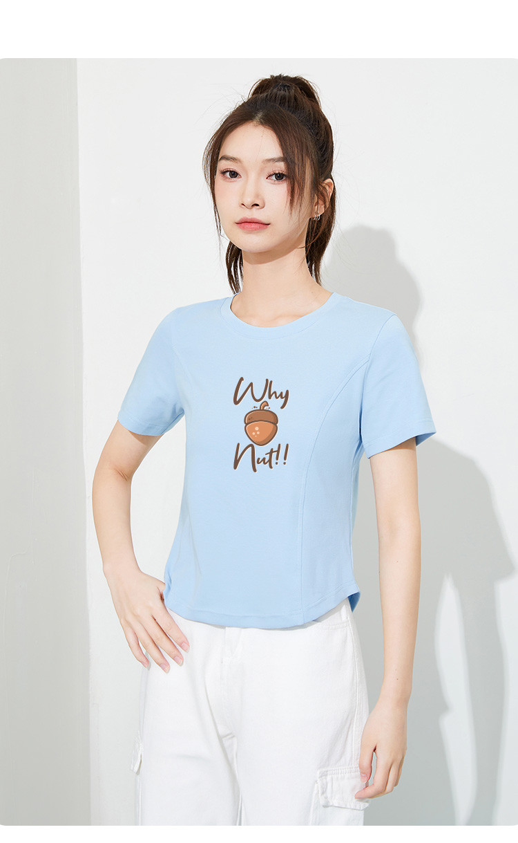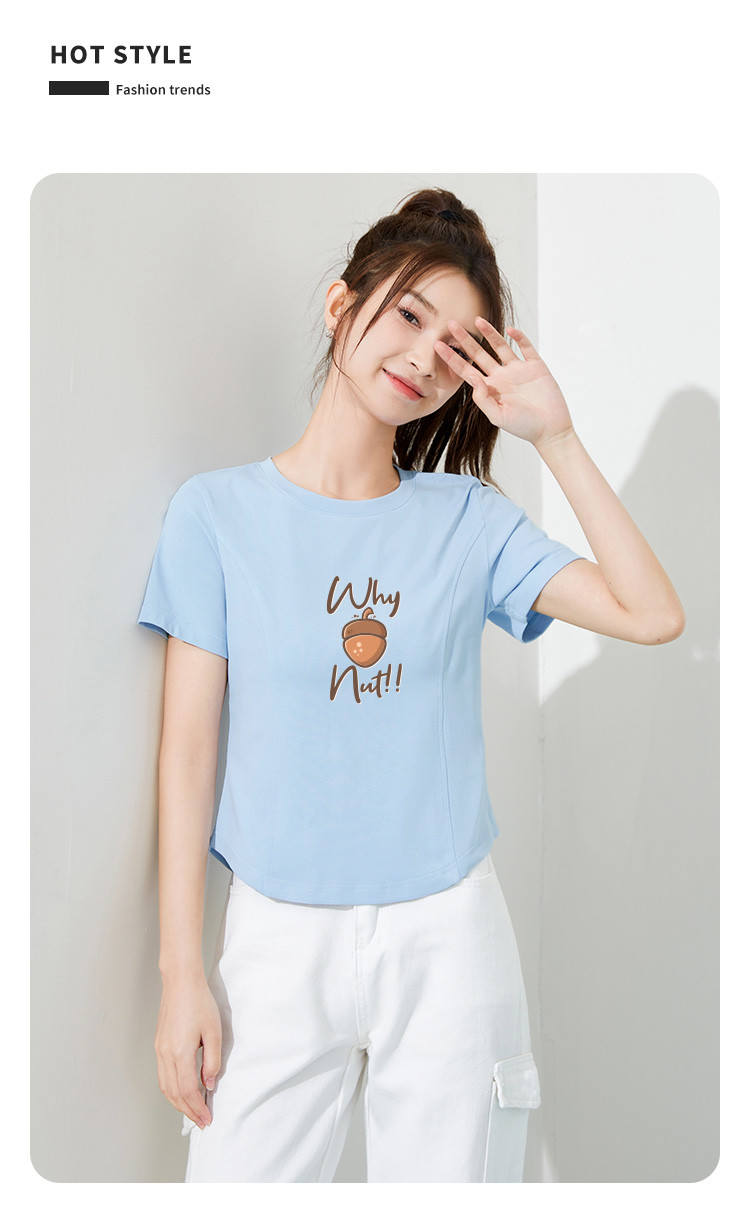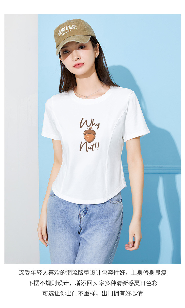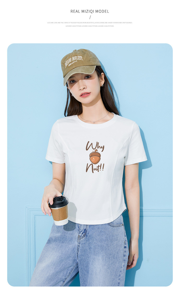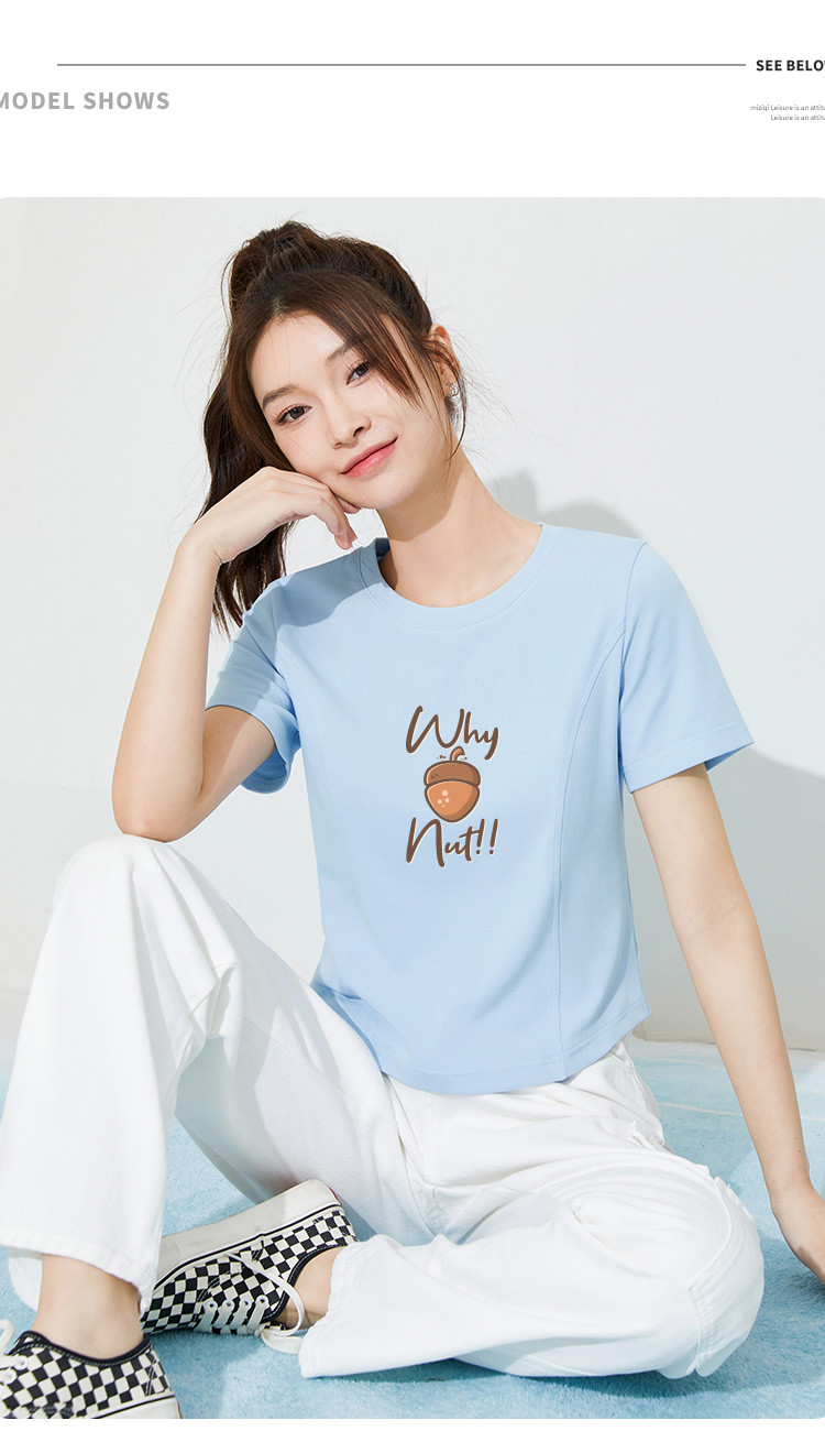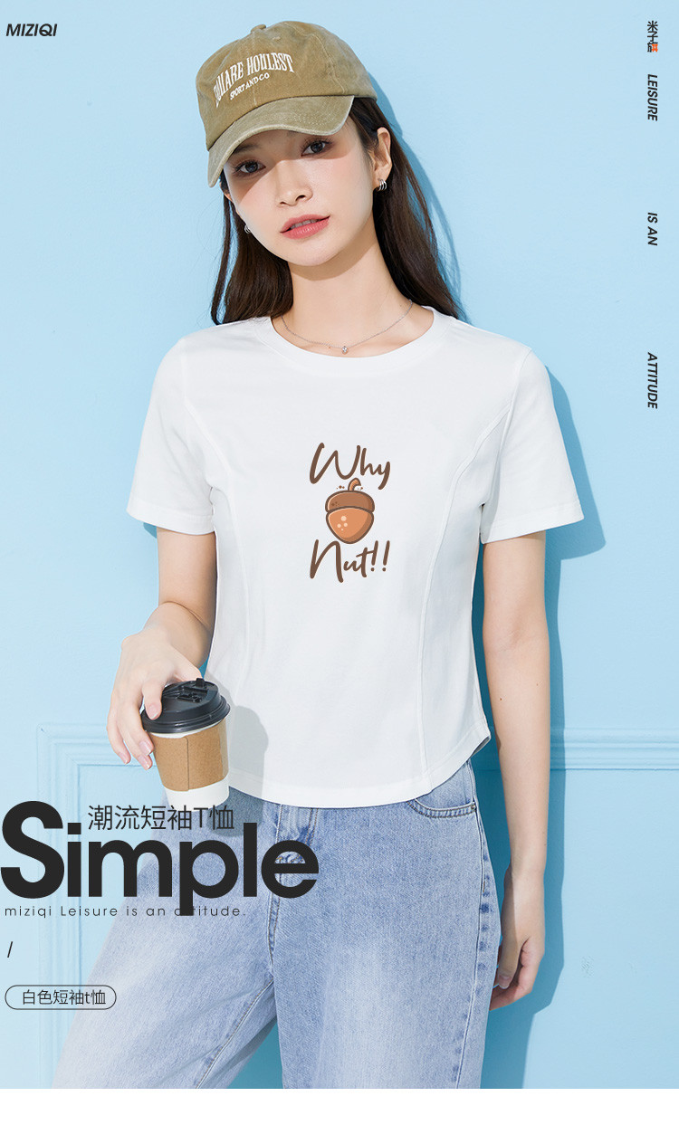 商品名称:米子旗夏季款圆领女式T恤字母印花洋气修身短款上衣 569818