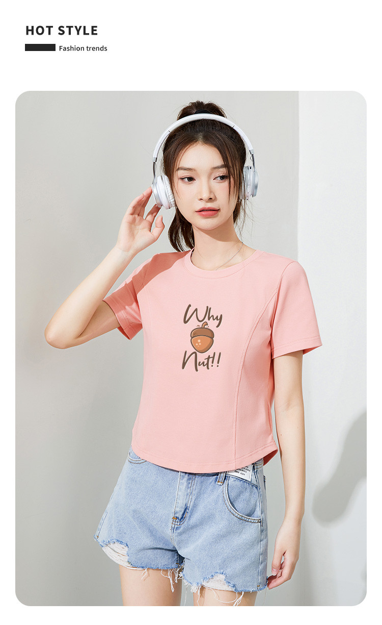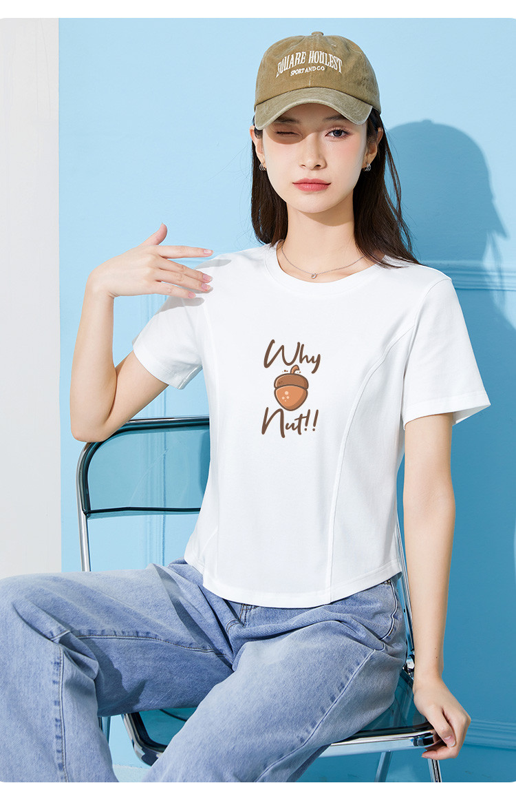 米子旗夏季款圆领女式T恤字母印花洋气修身短款上衣 569818
