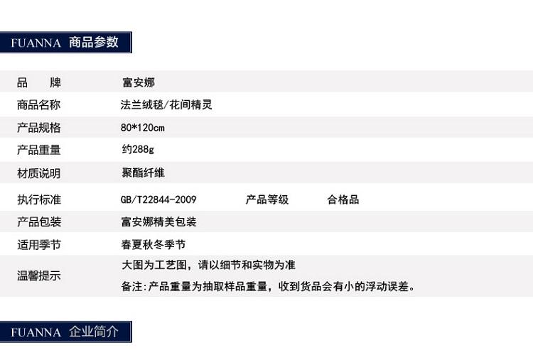 商品名称:FUANNA/富安娜花间精灵法兰绒毯80*120cm 约288g