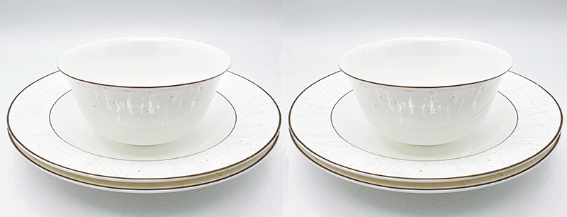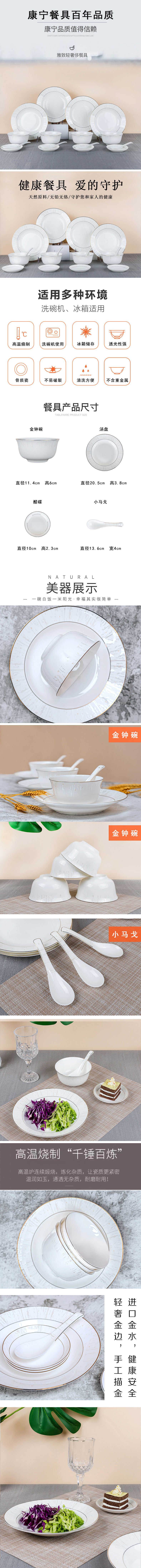 润物细无声骨质瓷餐具6件套内含:4.5寸金钟*2,8.0寸汤盘*4