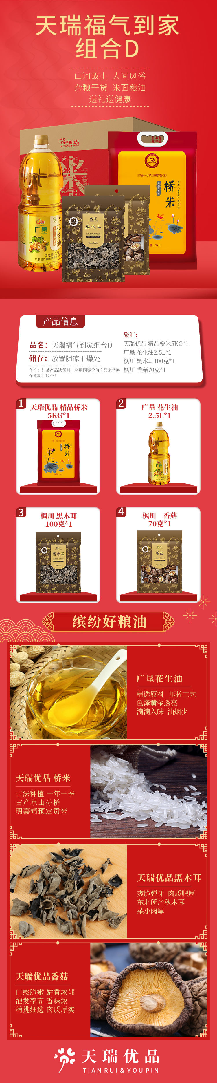 商品名称:天瑞优品福气到家米油干货组合D款5170g+2500ml