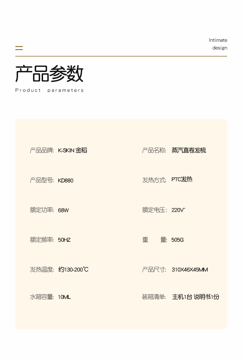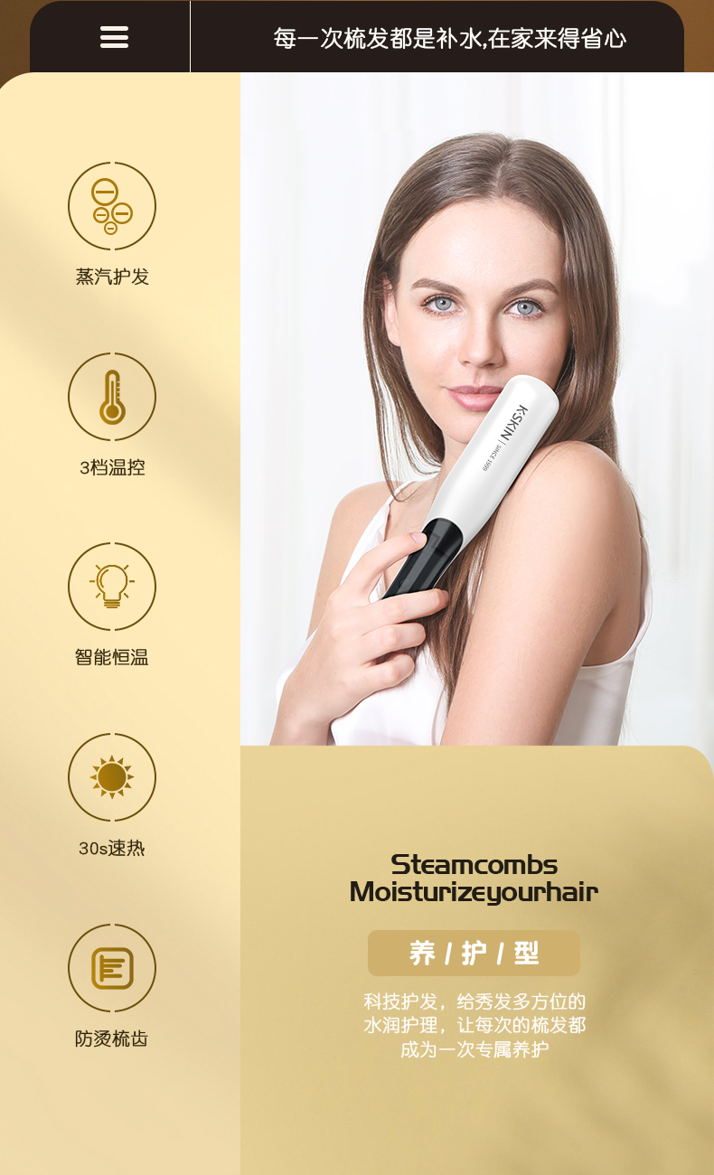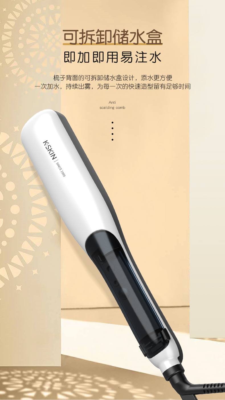 商品名称:K.SKIN/金稻蒸汽直卷发梳KD880