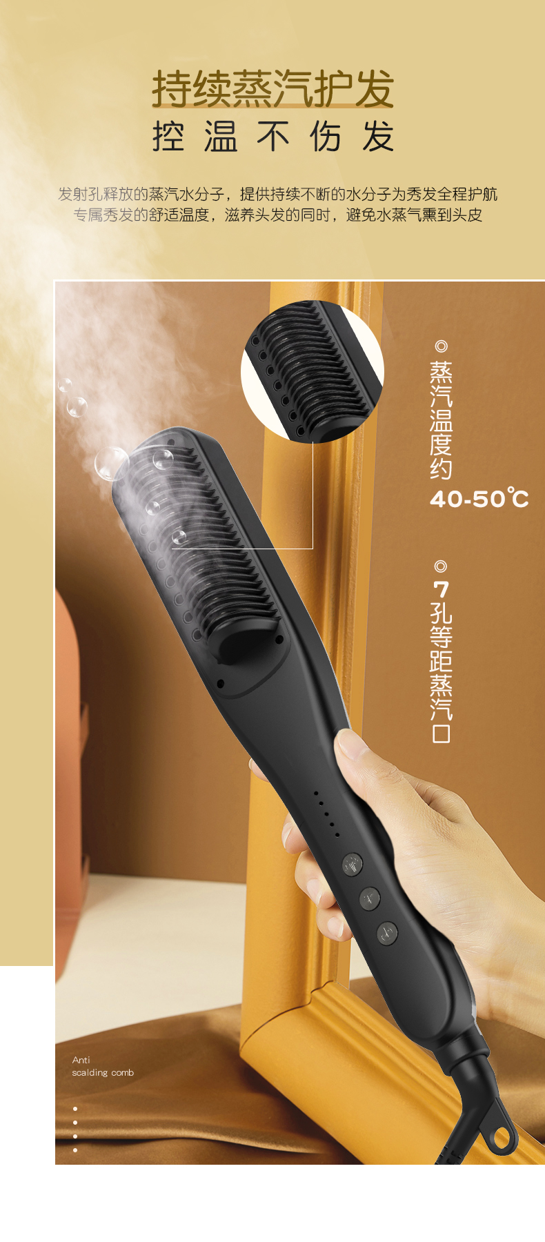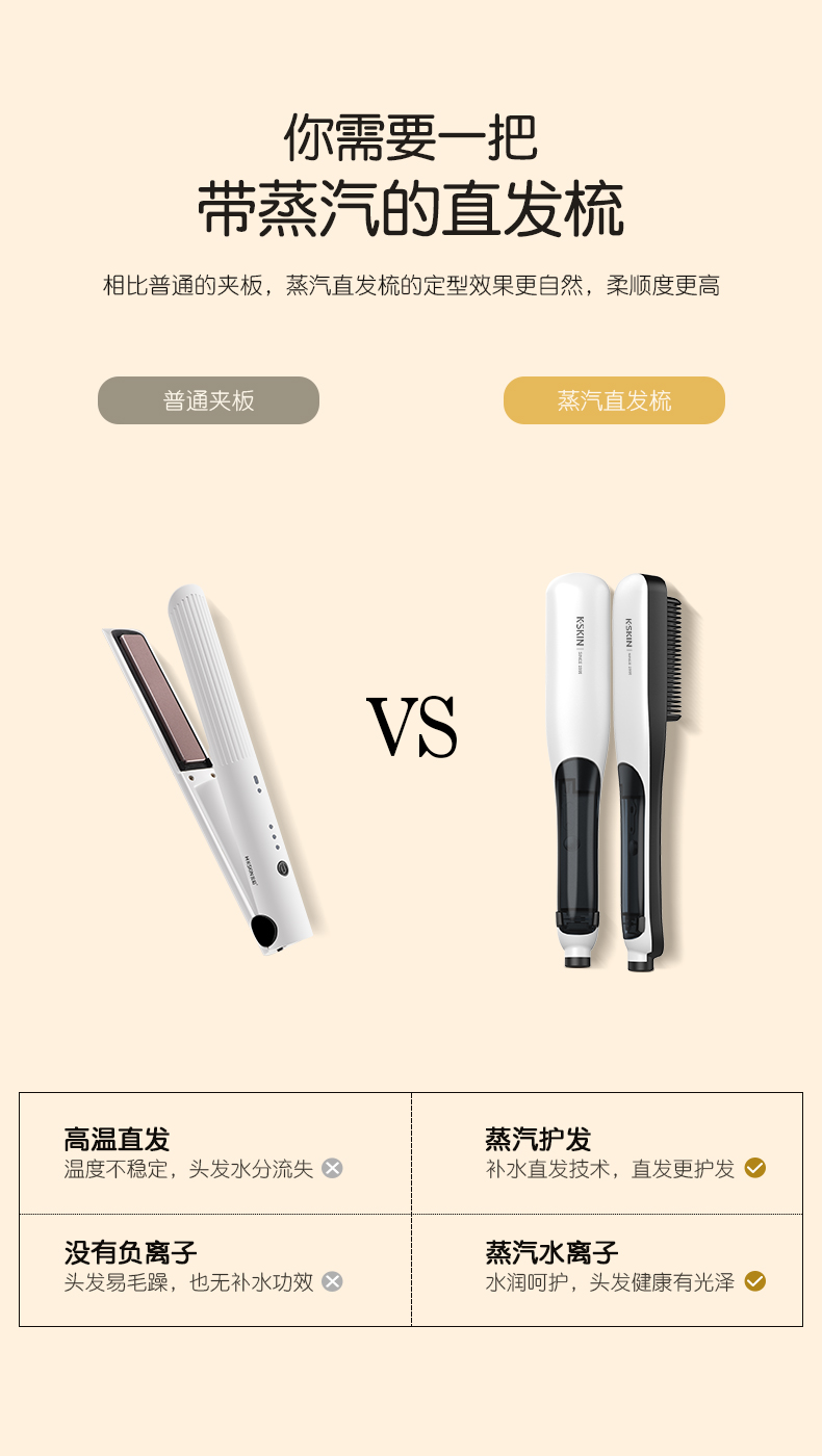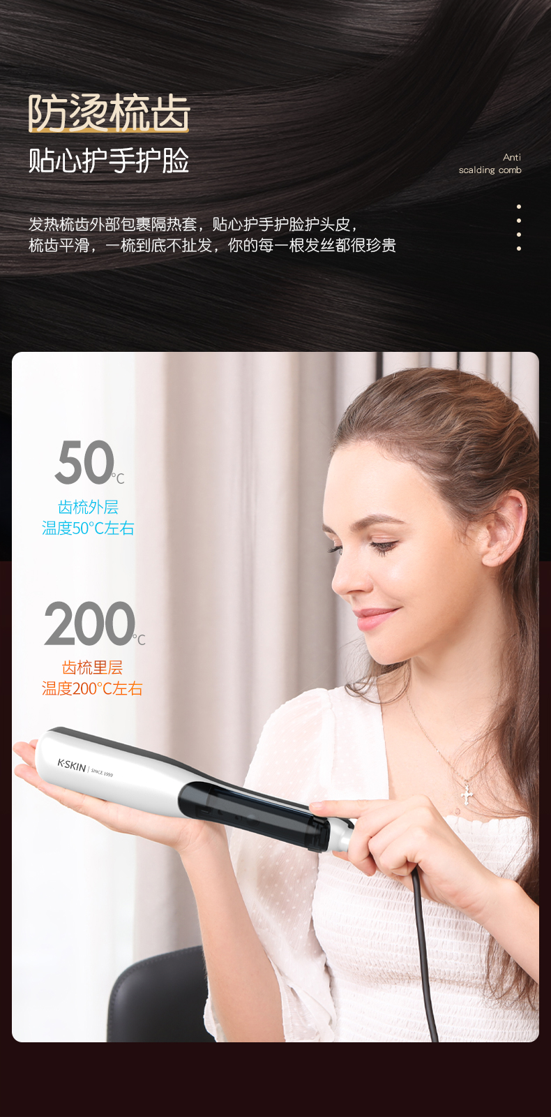 商品名称:K.SKIN/金稻蒸汽直卷发梳KD880
