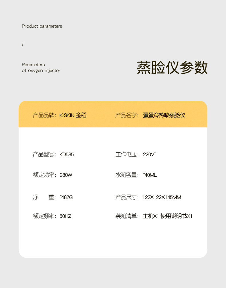 商品名称:K.SKIN/金稻蛋蛋冷热喷蒸脸仪KD535