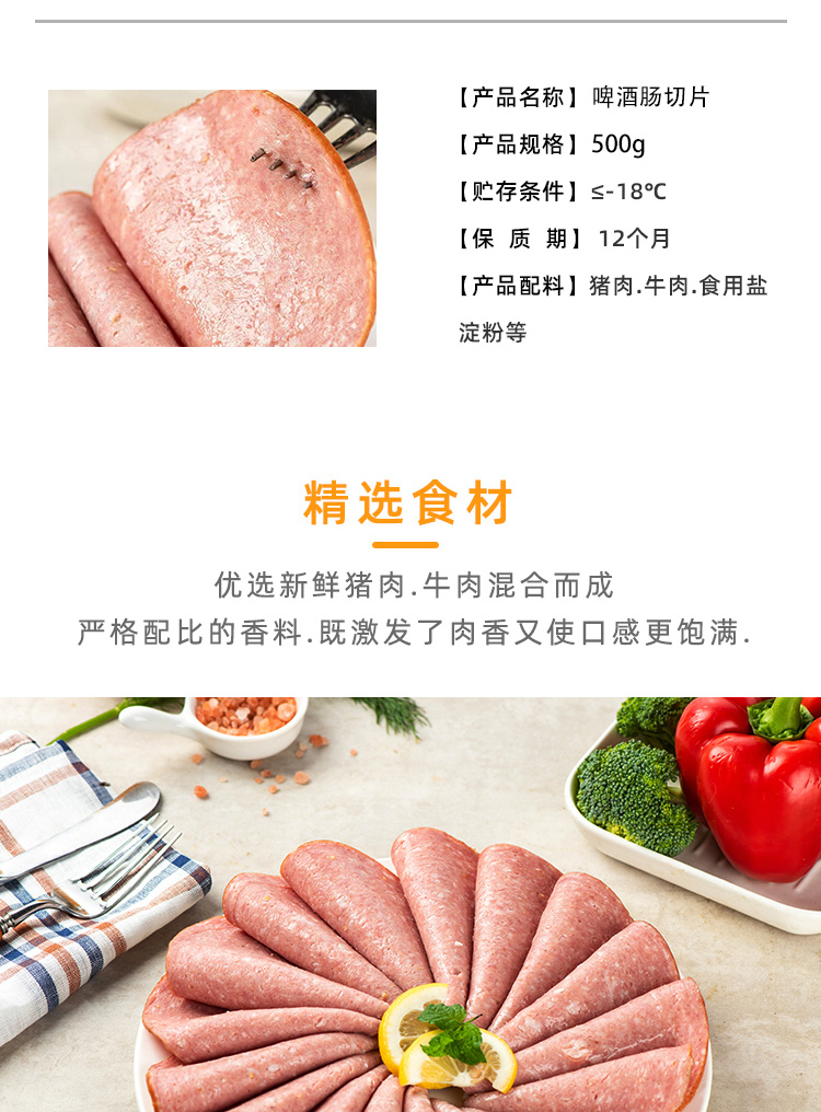 商品名称:健士牌啤酒肠切片500g