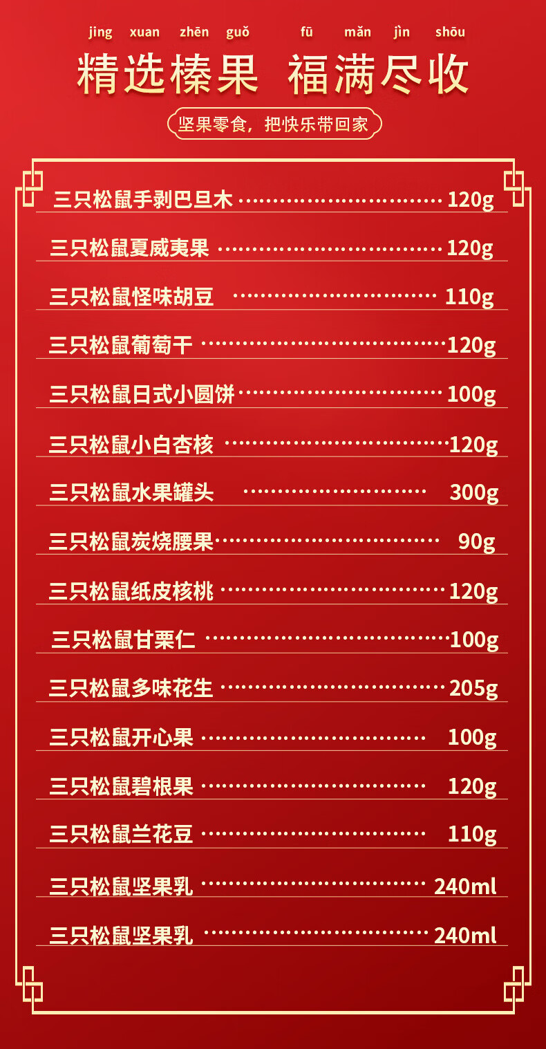 商品名称:三只松鼠繁华坚果零食礼盒1835g+480ml