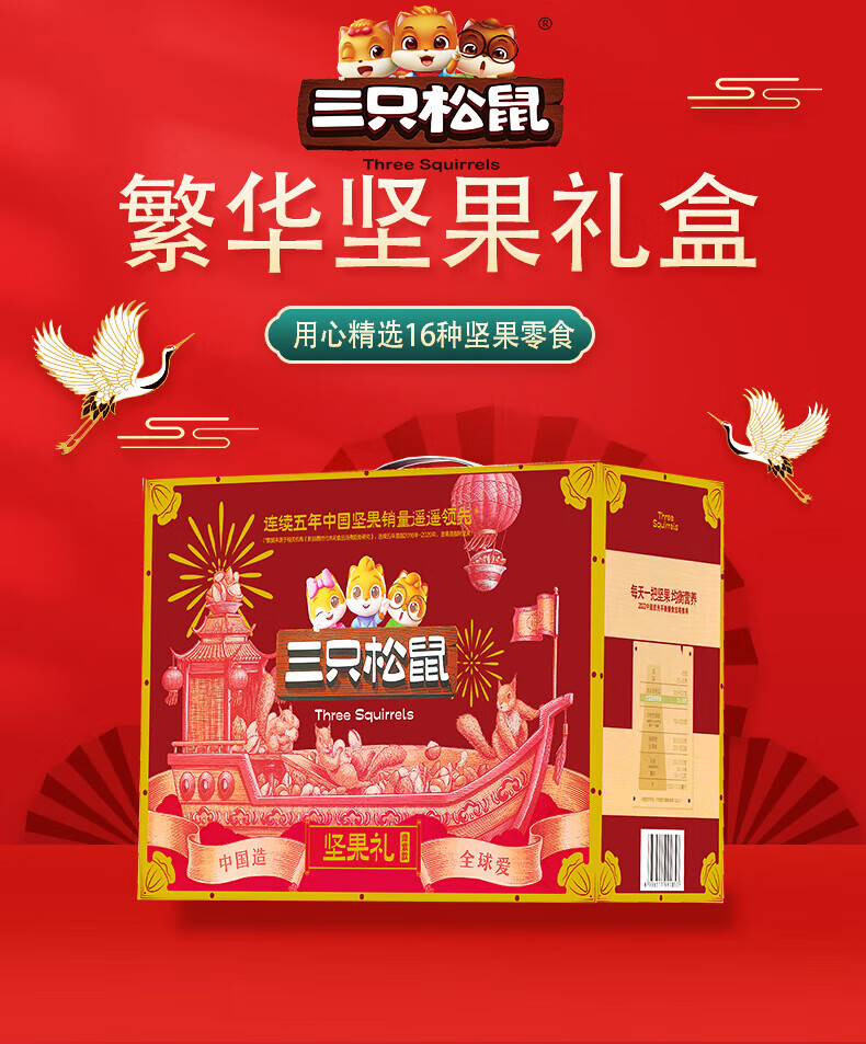 三只松鼠繁华坚果零食礼盒1835g+480ml