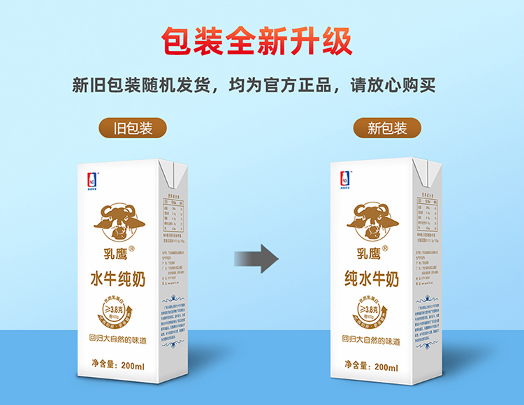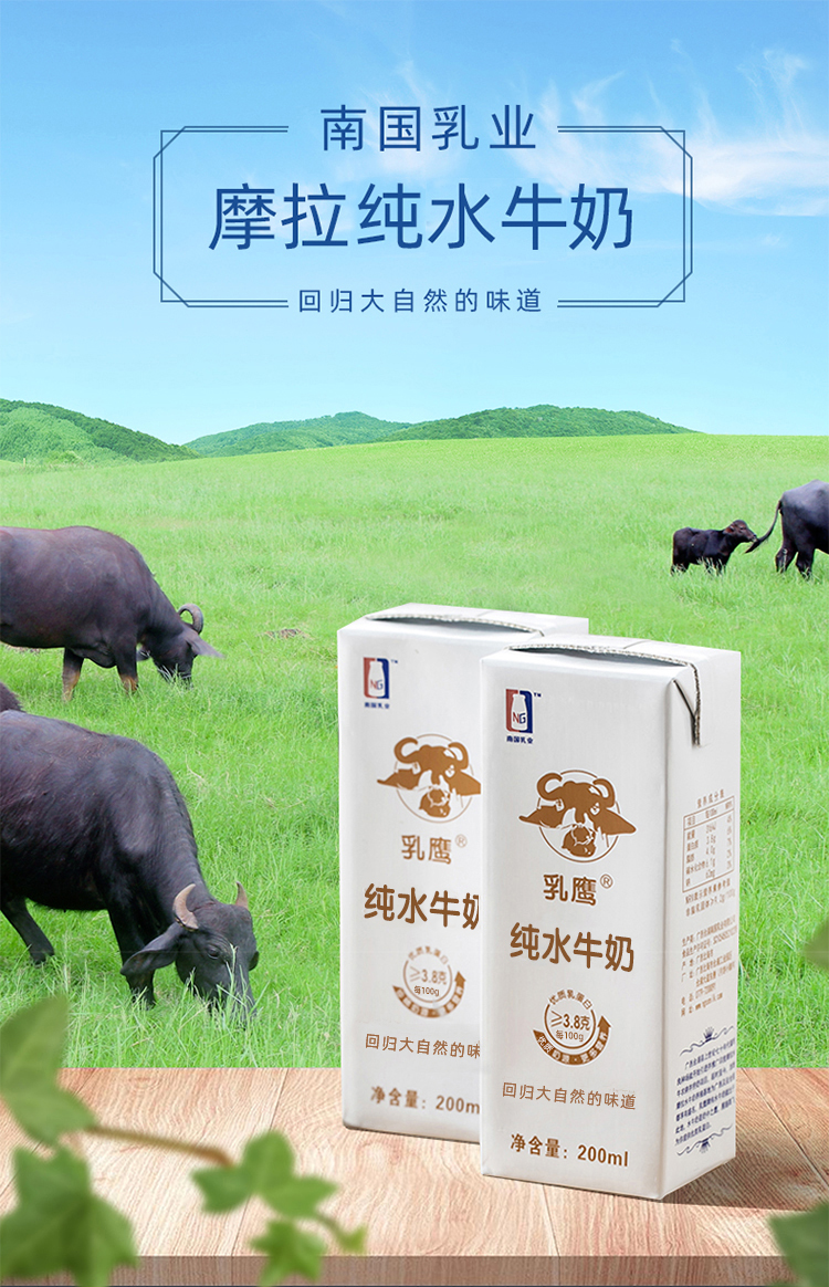 商品名称:乳鹰部分脱脂灭菌水牛纯奶整箱200ml*10盒