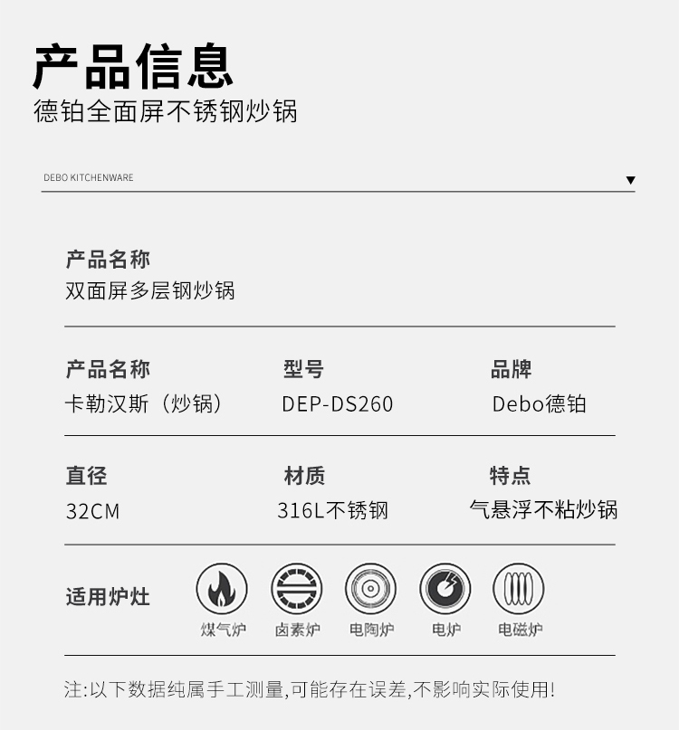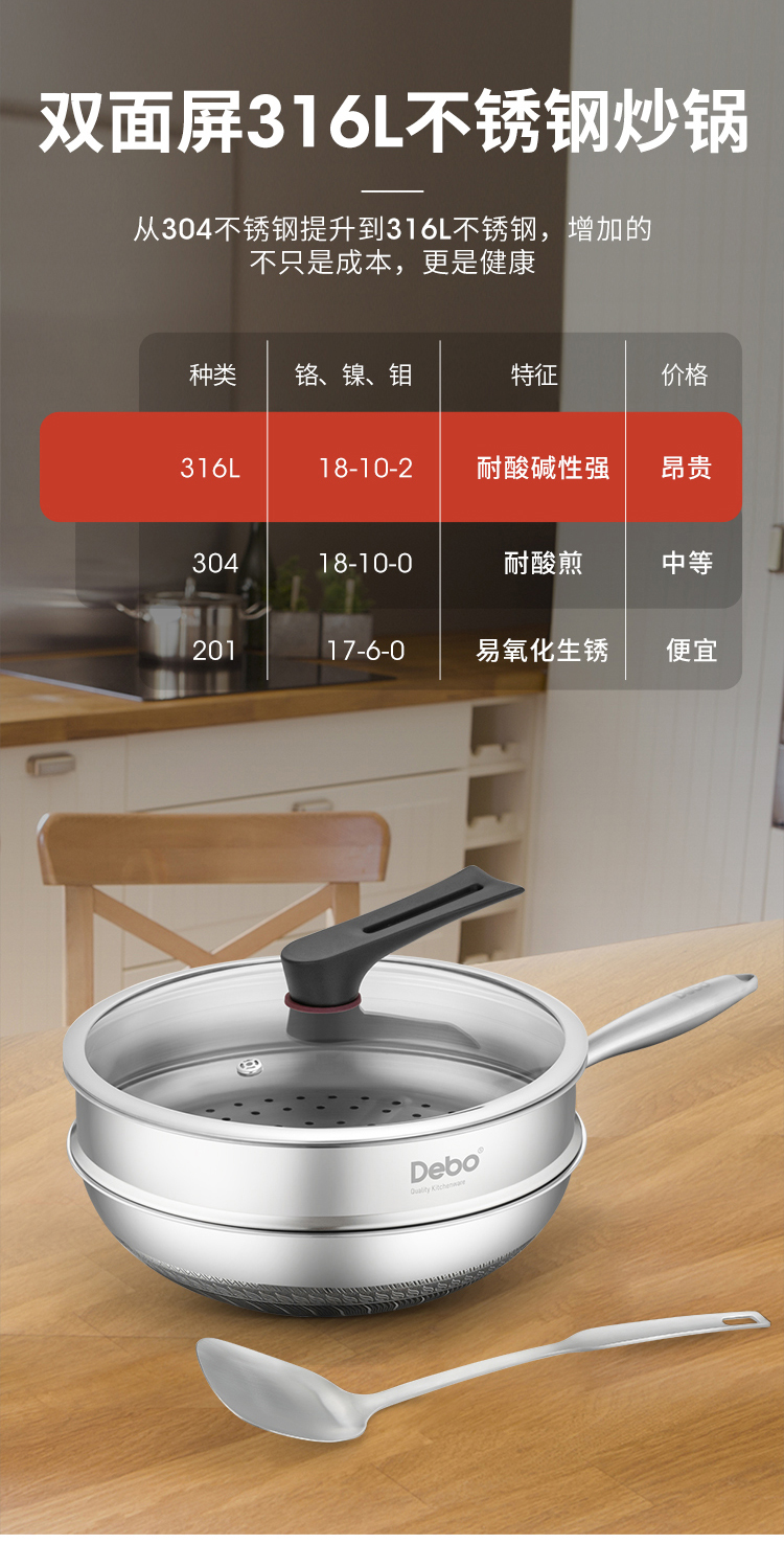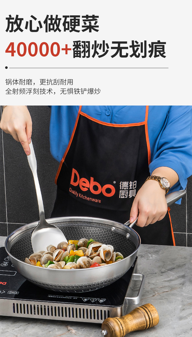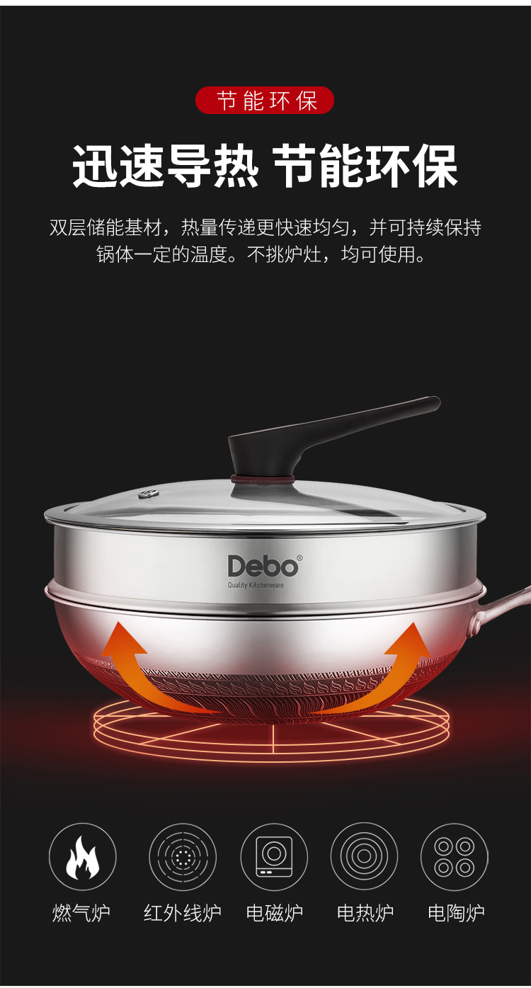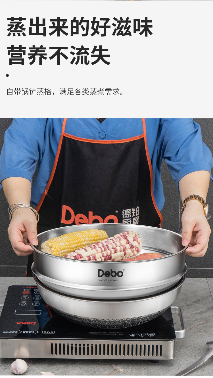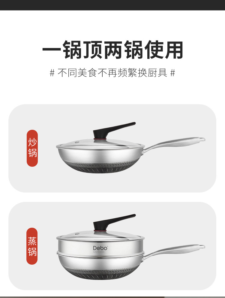 商品名称:Debo/德铂卡勒汉斯双面屏多层钢炒锅套装B款DEP-DS260