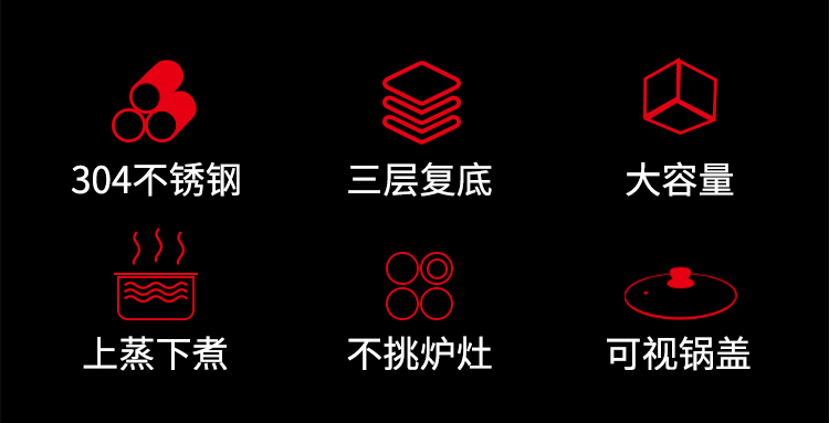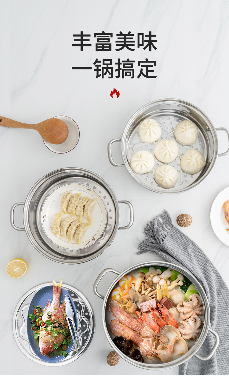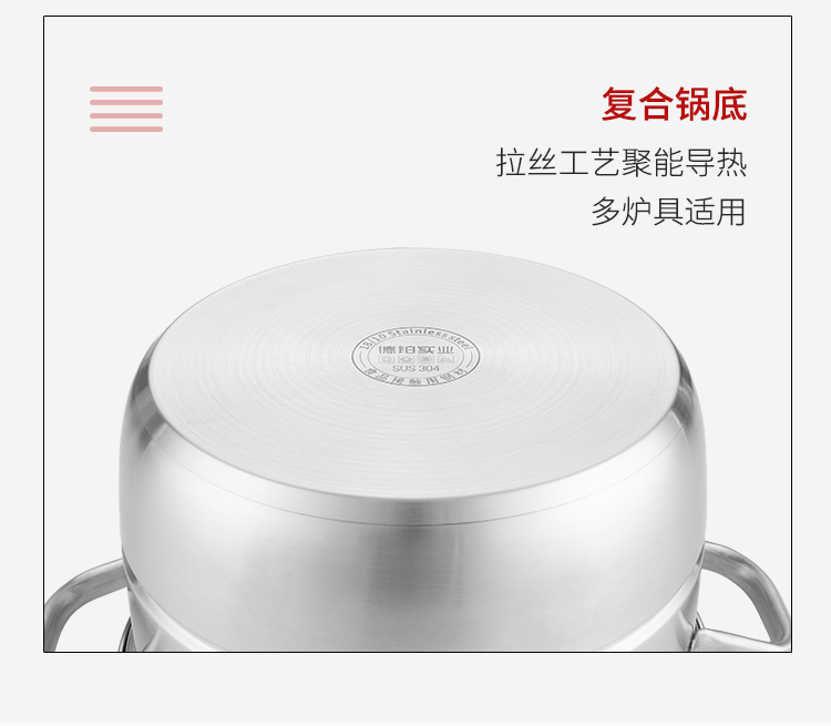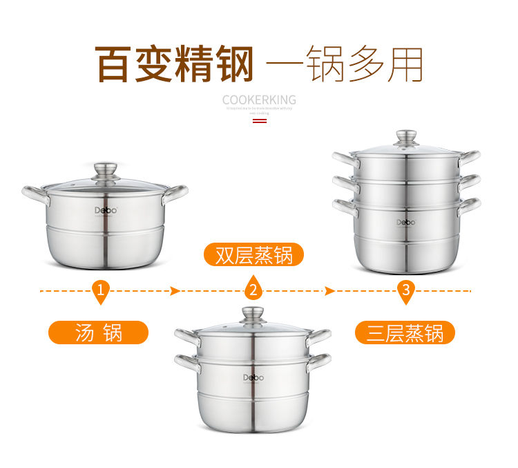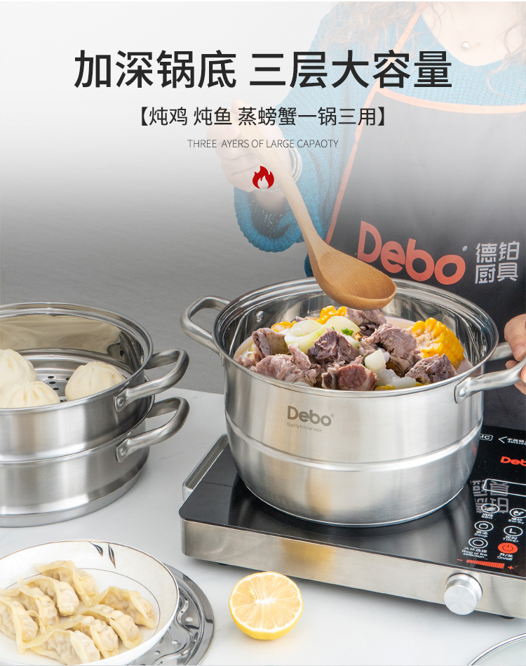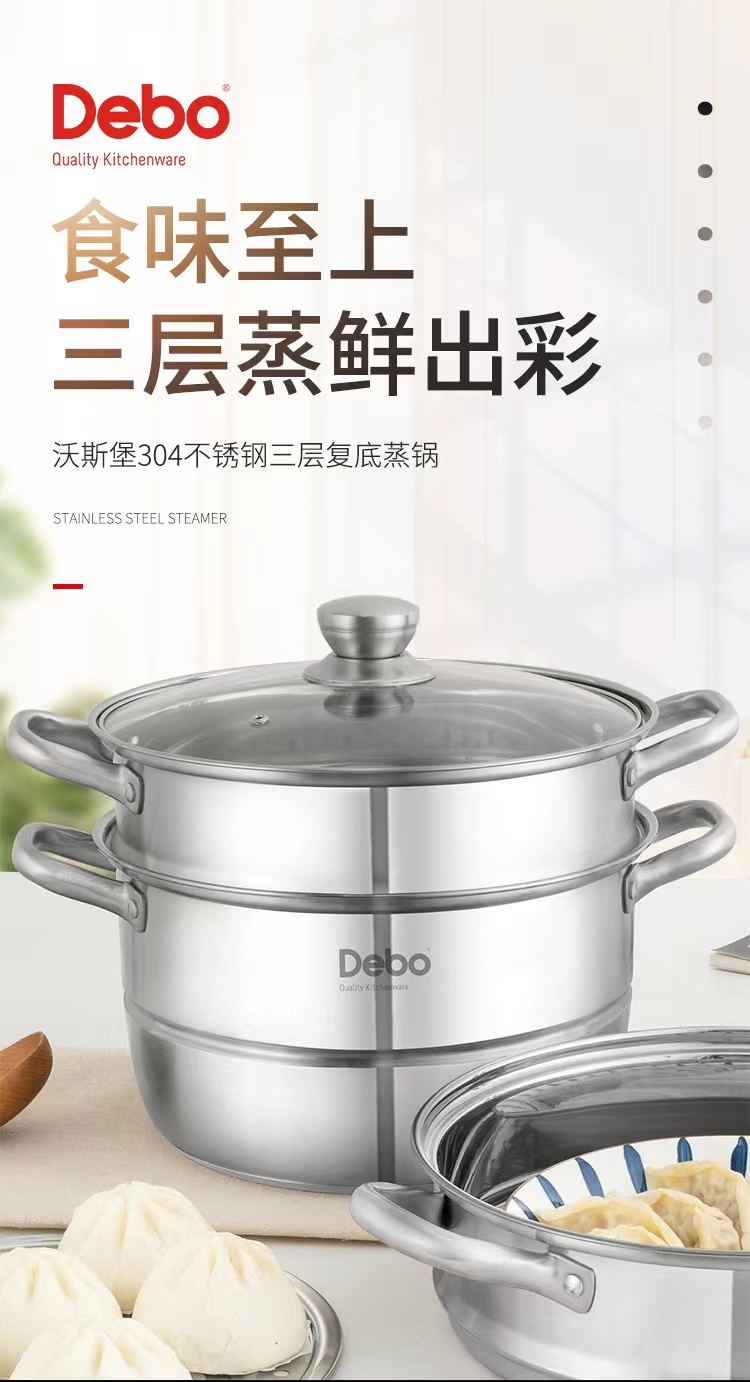 商品名称:Debo/德铂28cm沃斯堡不锈钢三层复底蒸锅DEP-775