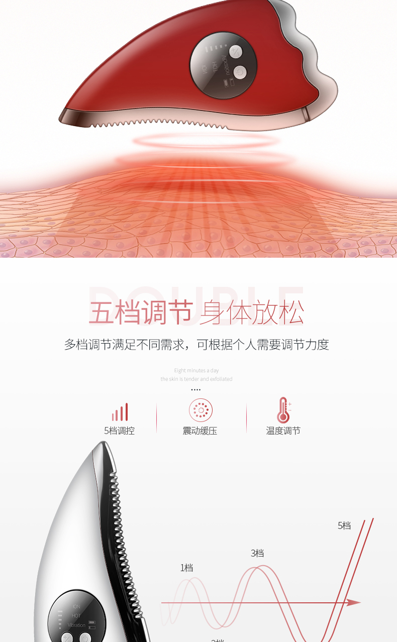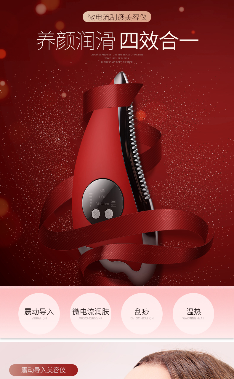 K.SKIN/金稻微电流刮痧美容仪-红色KD817