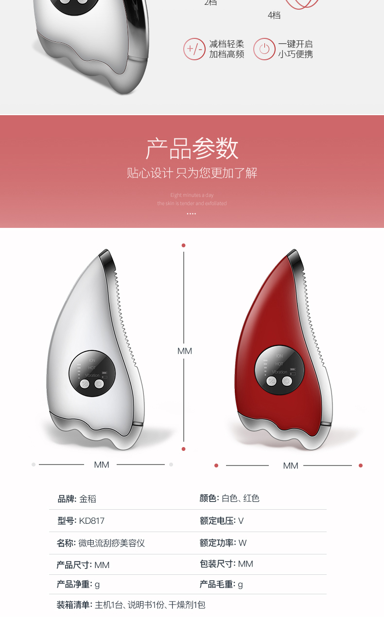 商品名称:K.SKIN/金稻微电流刮痧美容仪-红色KD817
