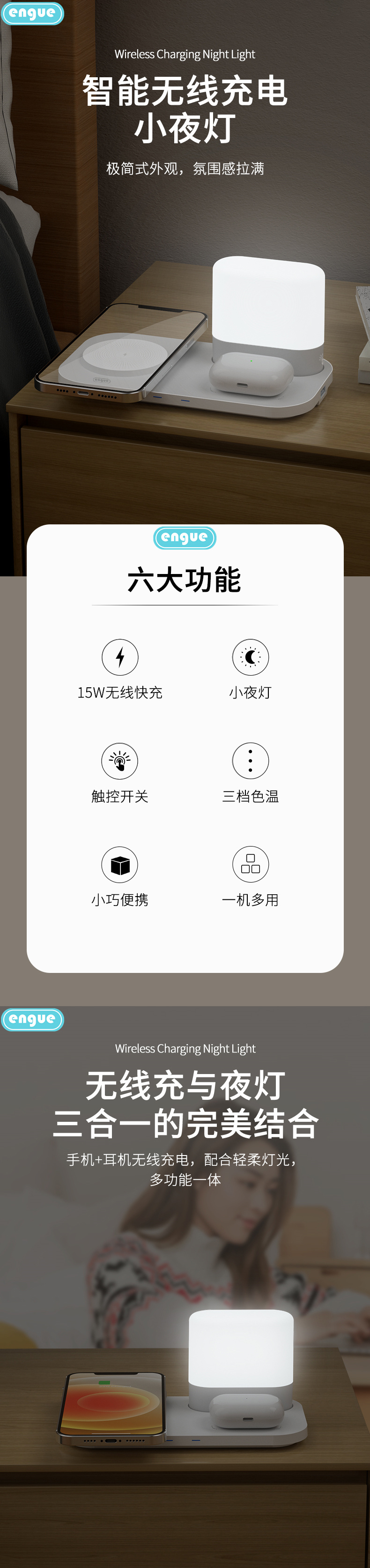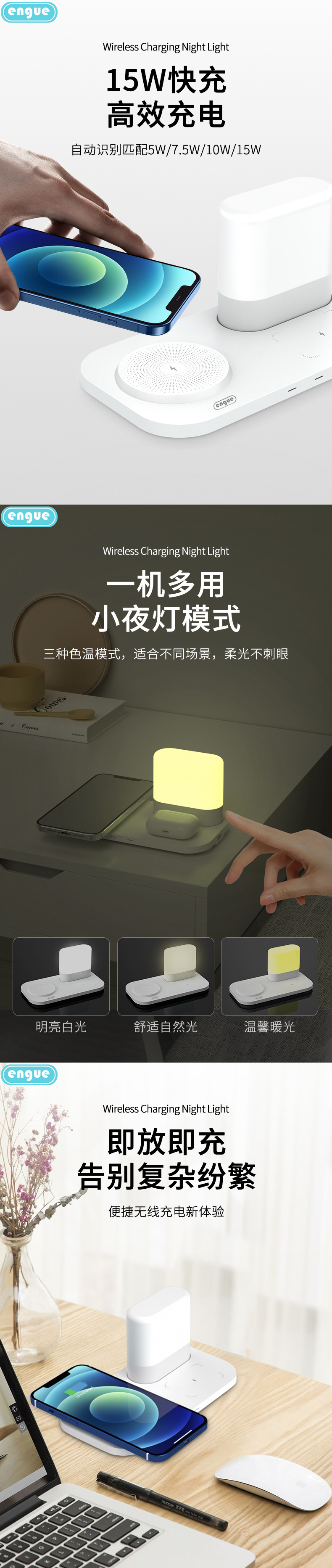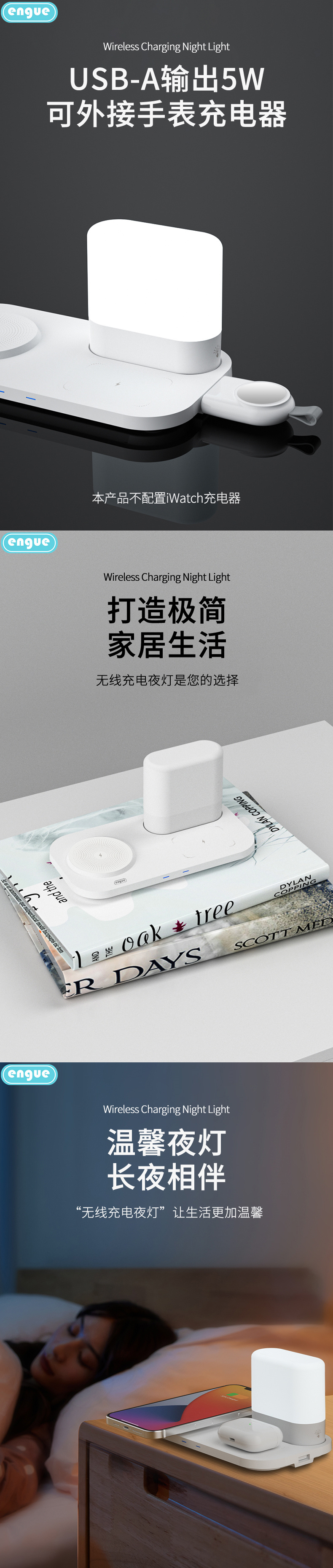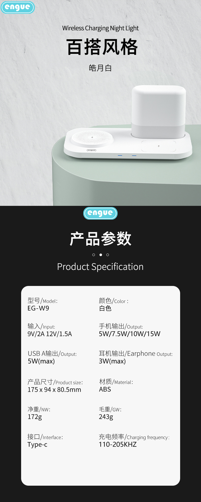 商品名称:ENGUE/恩谷智能无线充电小夜灯-白色EG-W9