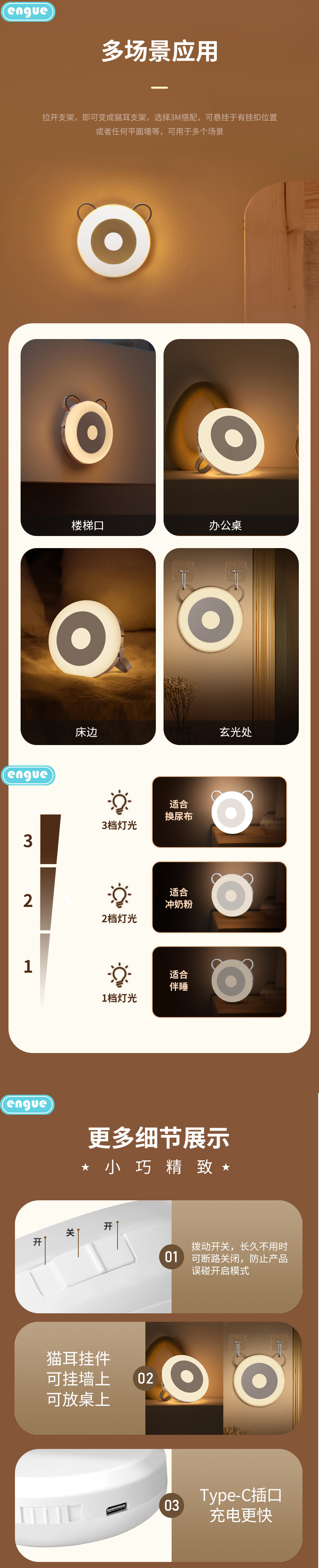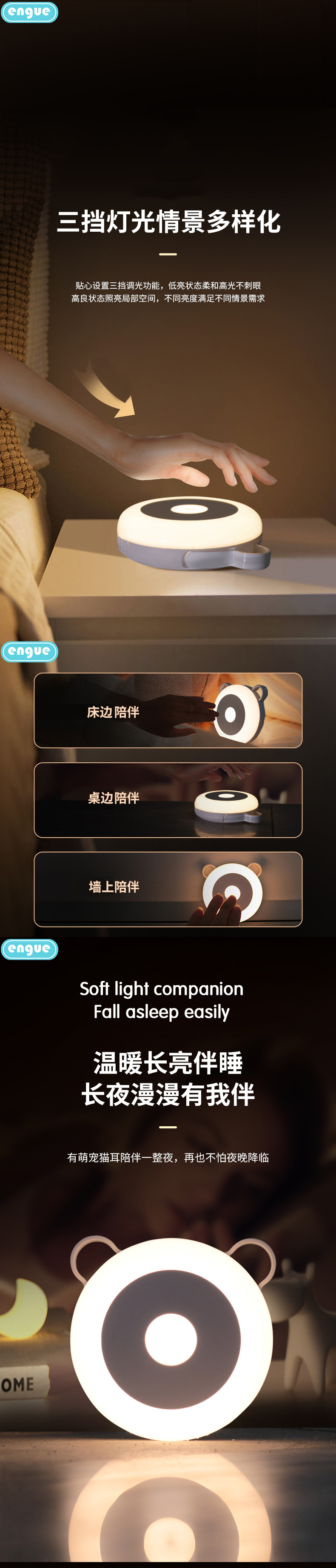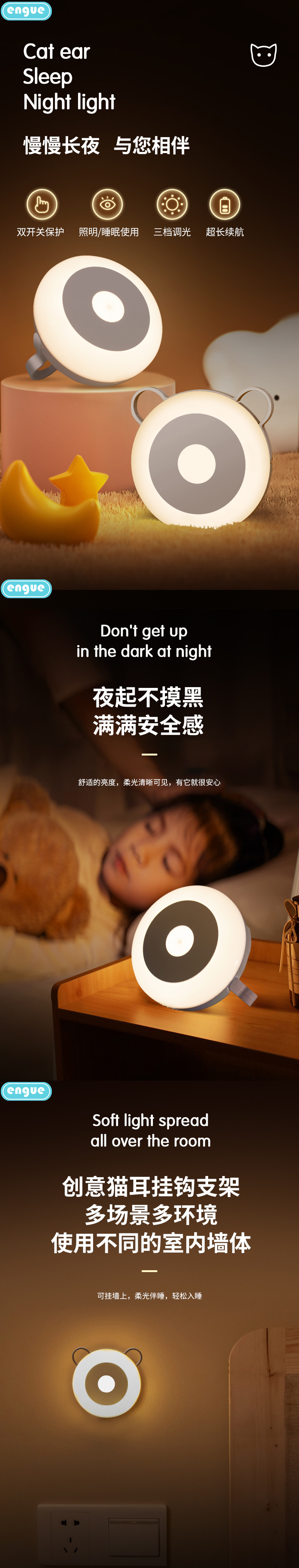 商品名称:ENGUE/恩谷猫耳睡眠小夜灯-白色EG-613