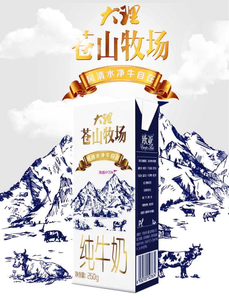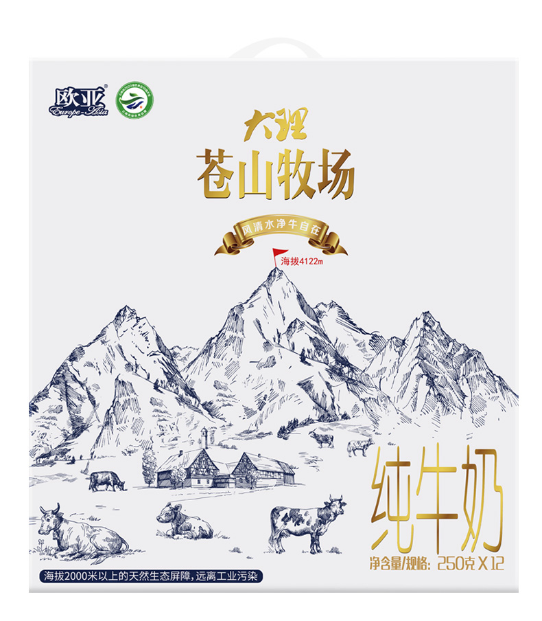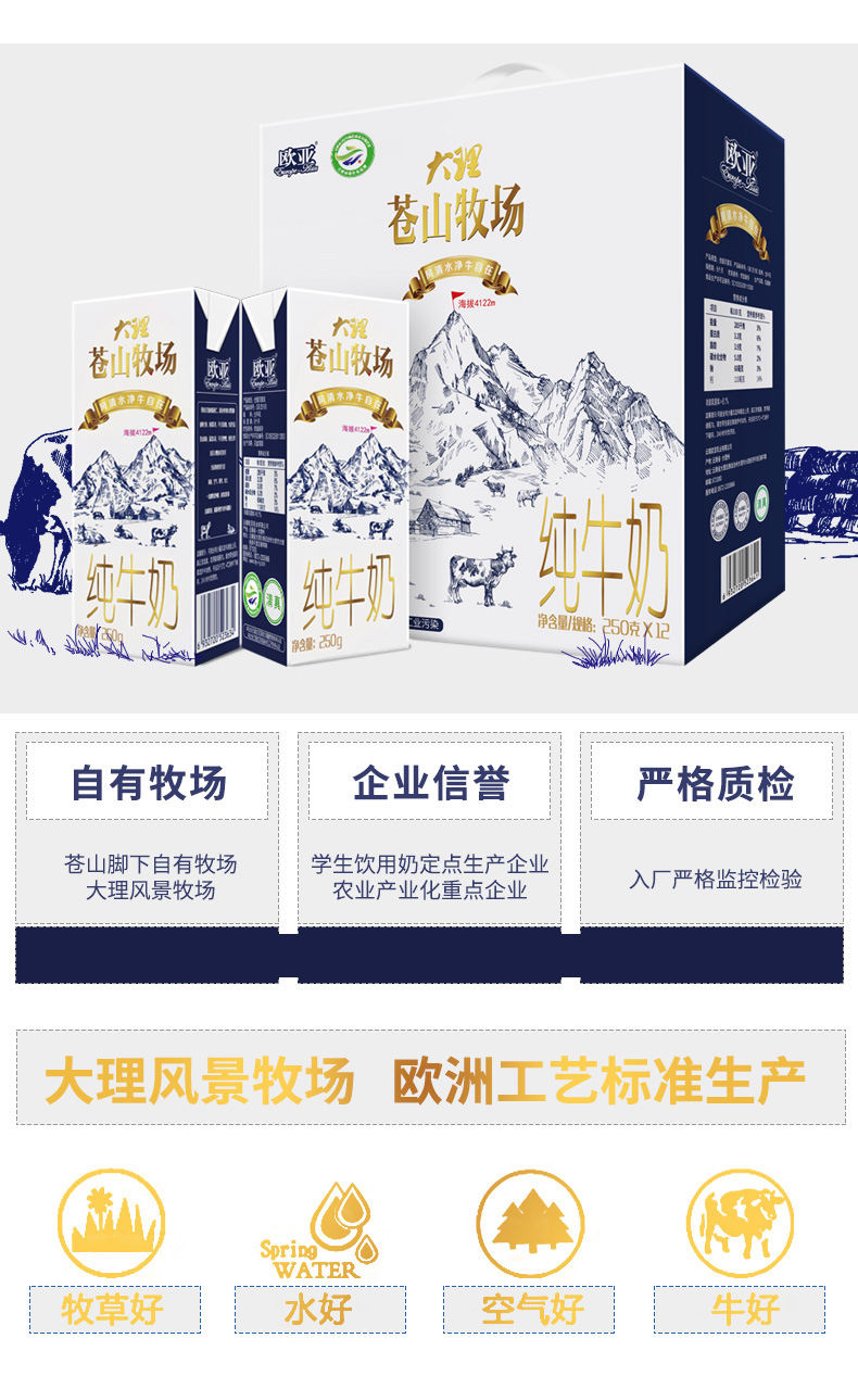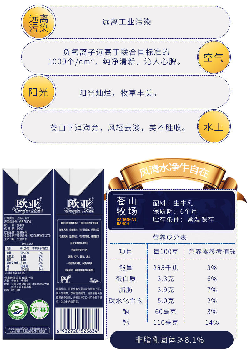 商品名称:Europe-Asia/欧亚大理苍山牧场纯牛奶整箱250g*12盒