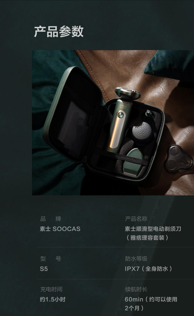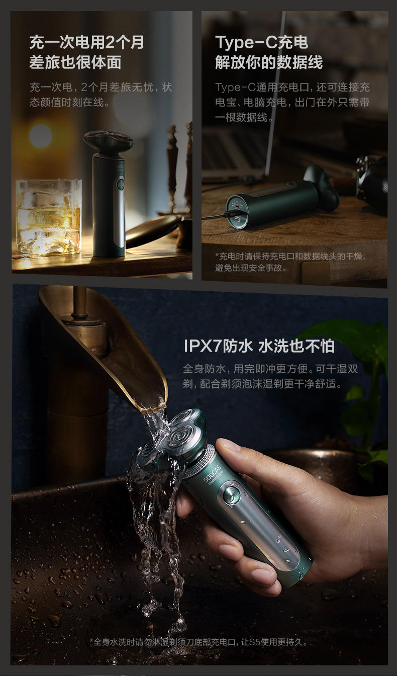 商品名称:soocas/素士顺滑型电动剃须刀S5