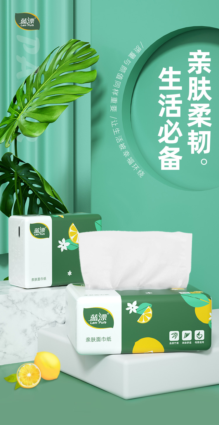商品名称:Lam pure/蓝漂四层本色抽纸224张*50包LP-36914