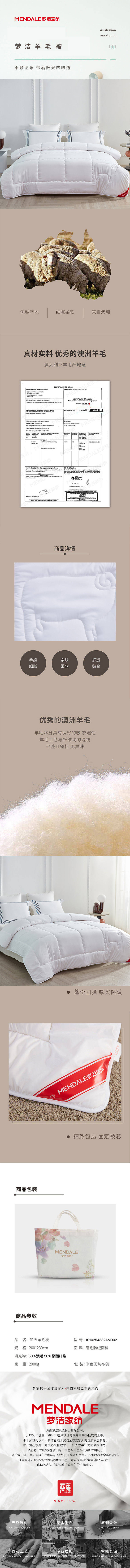 商品名称:梦洁羊毛被200*230cm 2000g