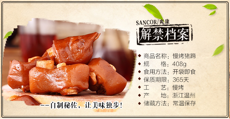 商品名称:SANCOR/爽康温州特产慢烤猪蹄408g