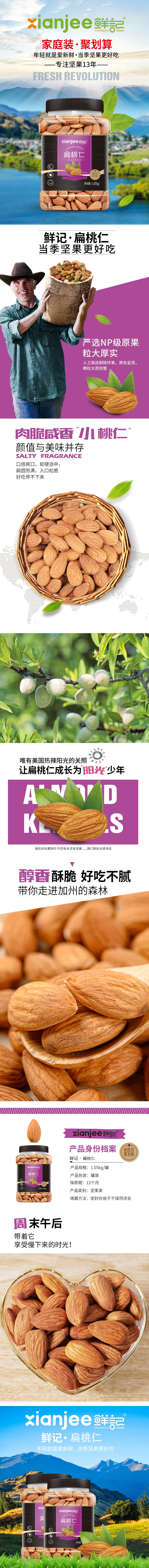 商品名称:xianjee/鲜记扁桃仁1050g