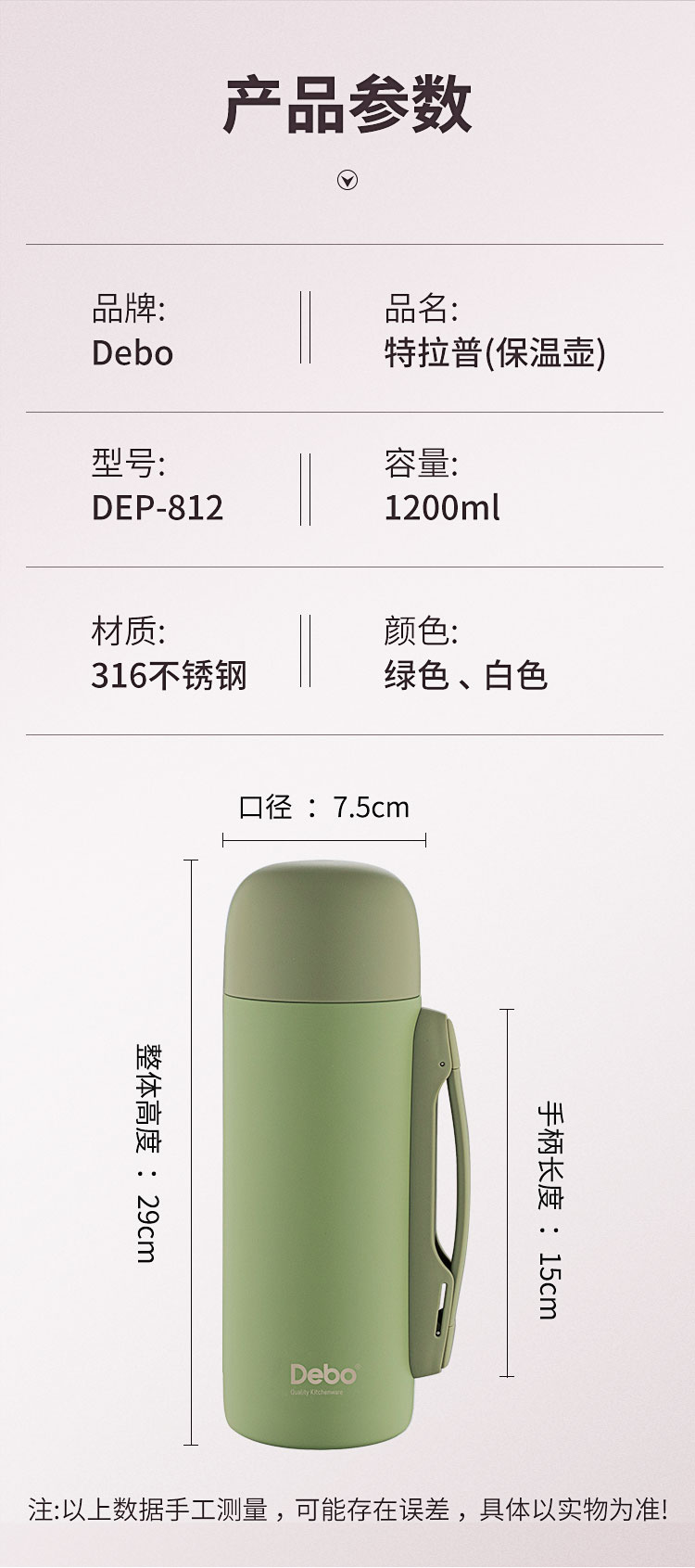 Debo/德铂1.2升特拉普保温壶DEP-812
