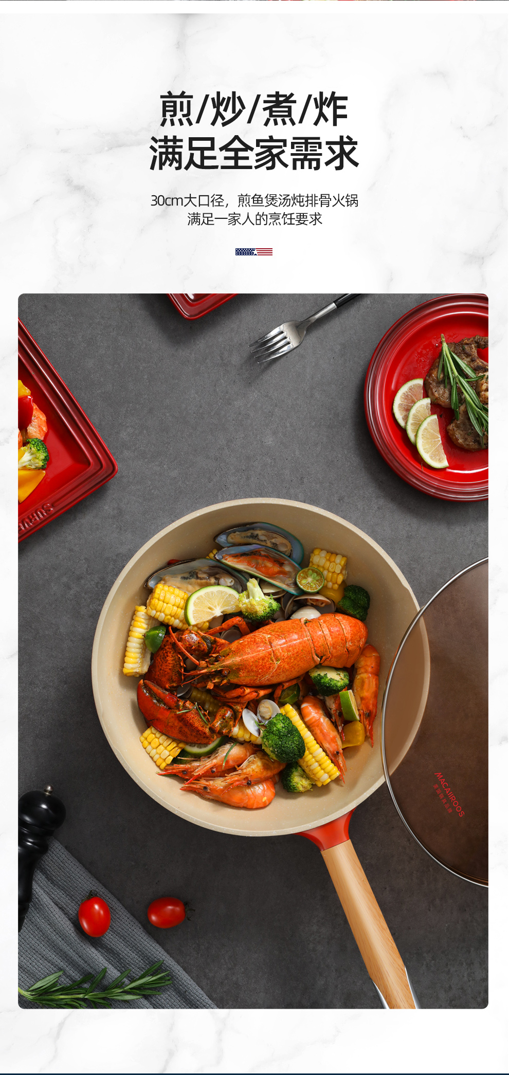 MACAIIROOS/迈卡罗30cm红标合金炒锅MC-C30L6